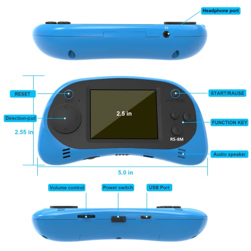 Details: Description: Screen: 2.5 Inch Earphone: yes, included in the package Power: Built-in 700mAh Li-ion Battery Games:12 Bit 200 games Speaker:Yes Feature: Classic Games: There are 200 funny games, such as sports, education, action, puzzles, etc., customized for young and old, keeping them away from the ring of mobile phones and computers territory. Enjoyment: The game console is exquisite and light, and it can be used for family entertainment at any time. It is ideal relax for the boring spare time. Earphone Out-put: Connect headphones to prevent interference with others. Don't prepare other earphone, included in the package. If you're looking for a new portable gaming console, here are the best handheld devices to get Packing List: 1 x Game console 1 x Earphone 1 x USB Cable 1 x Rope 1 x User manual