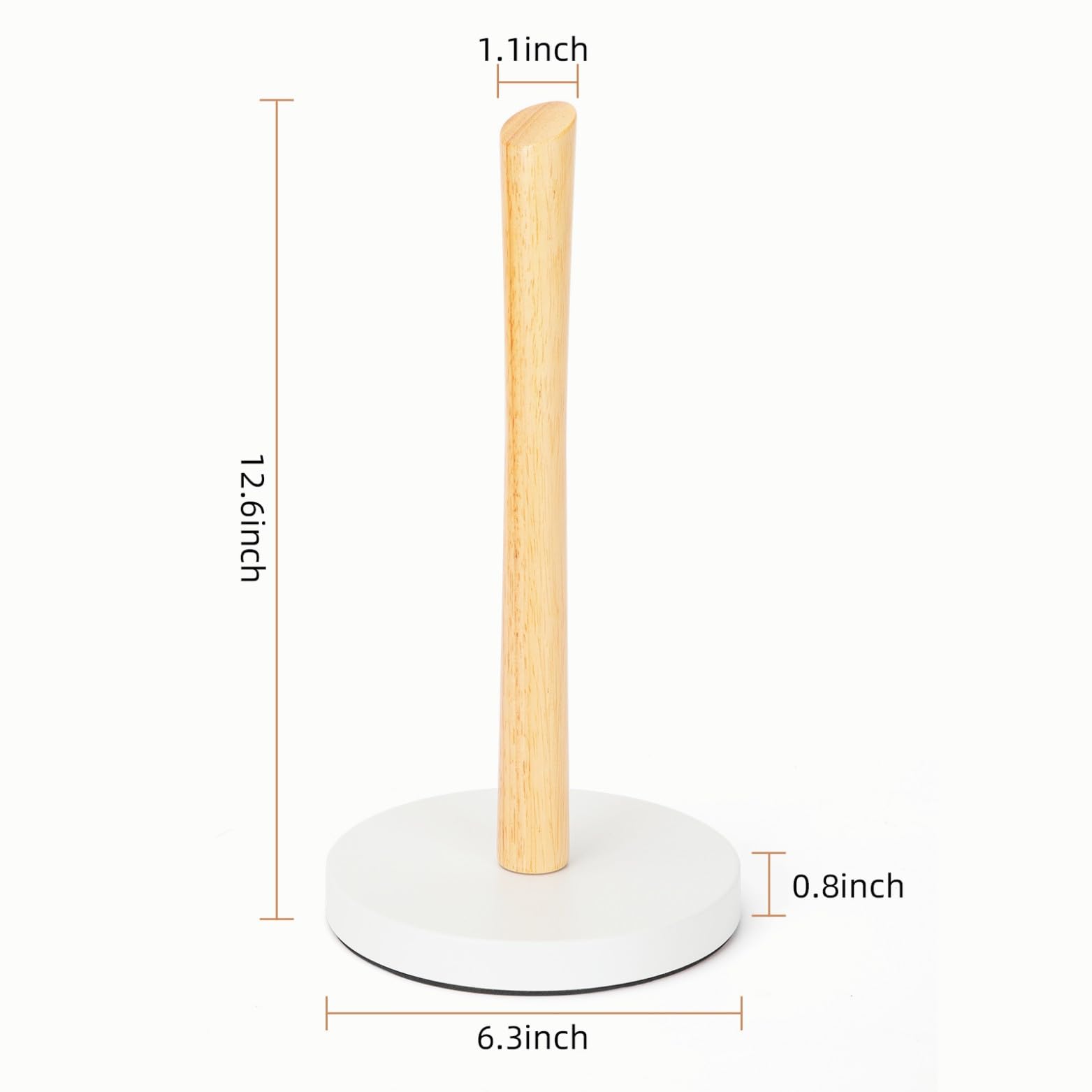 - Material - Our paper towel holder features a minimalist design with a wooden handle and a durable carbon steel base. This combination not only enhances stability but also adds a touch of natural beauty to your space. Its design suits paper towel rolls of any brand and size.