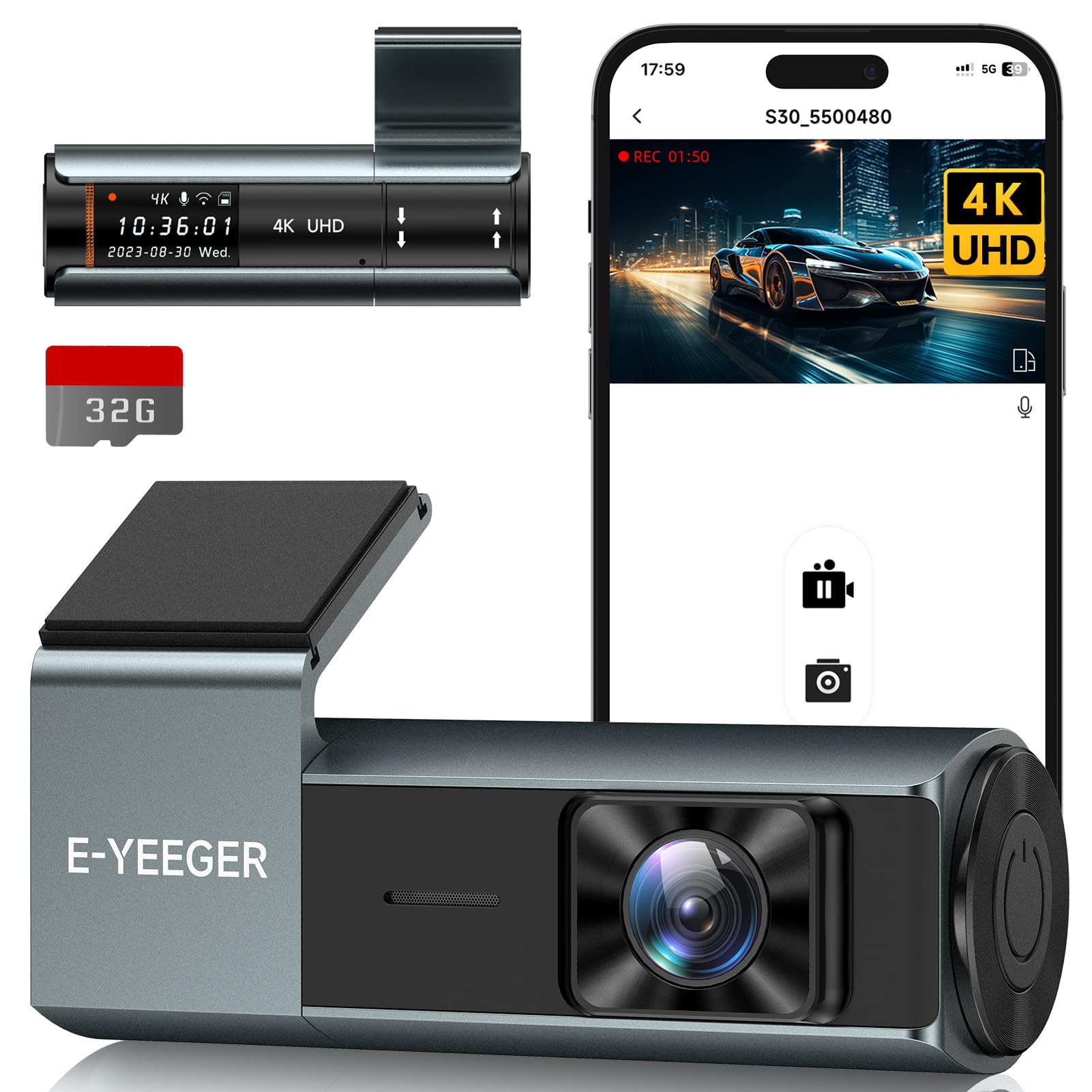 E-YEEGER Dash Cam Front 4K: Mini Dash Cams for Cars, 2160P Car Camera with Free 32GB Card, WiFi Dash Camera with APP, WDR Night Vision, 24 Hours Parking Monitor Dashcams, G-Sensor, Support 256GB Max