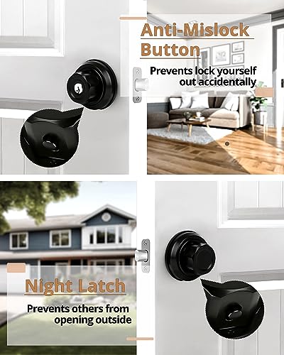 - ππ¨π₯π―π π©ππ’π§ π©π¨π’π§π π: There's no need to install an extra door latch. Our unpickable Night Latch is built-in on the interior knob. The deadbolt key can't unlock the door or get picked by unwanted guests, giving you peace of mind at night.