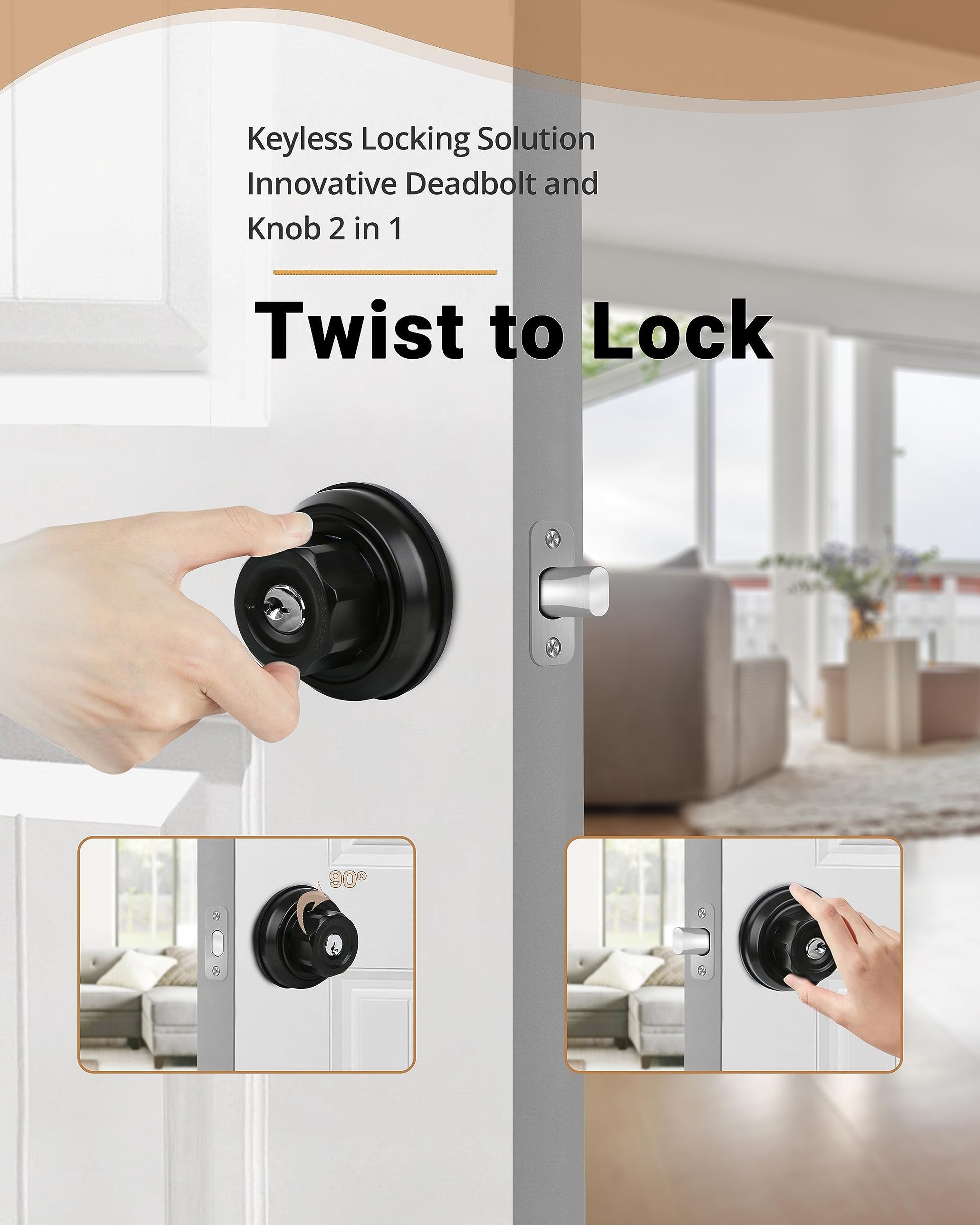 - ππ¨π₯π―π π©ππ’π§ π©π¨π’π§π π: There's no need to install an extra door latch. Our unpickable Night Latch is built-in on the interior knob. The deadbolt key can't unlock the door or get picked by unwanted guests, giving you peace of mind at night.