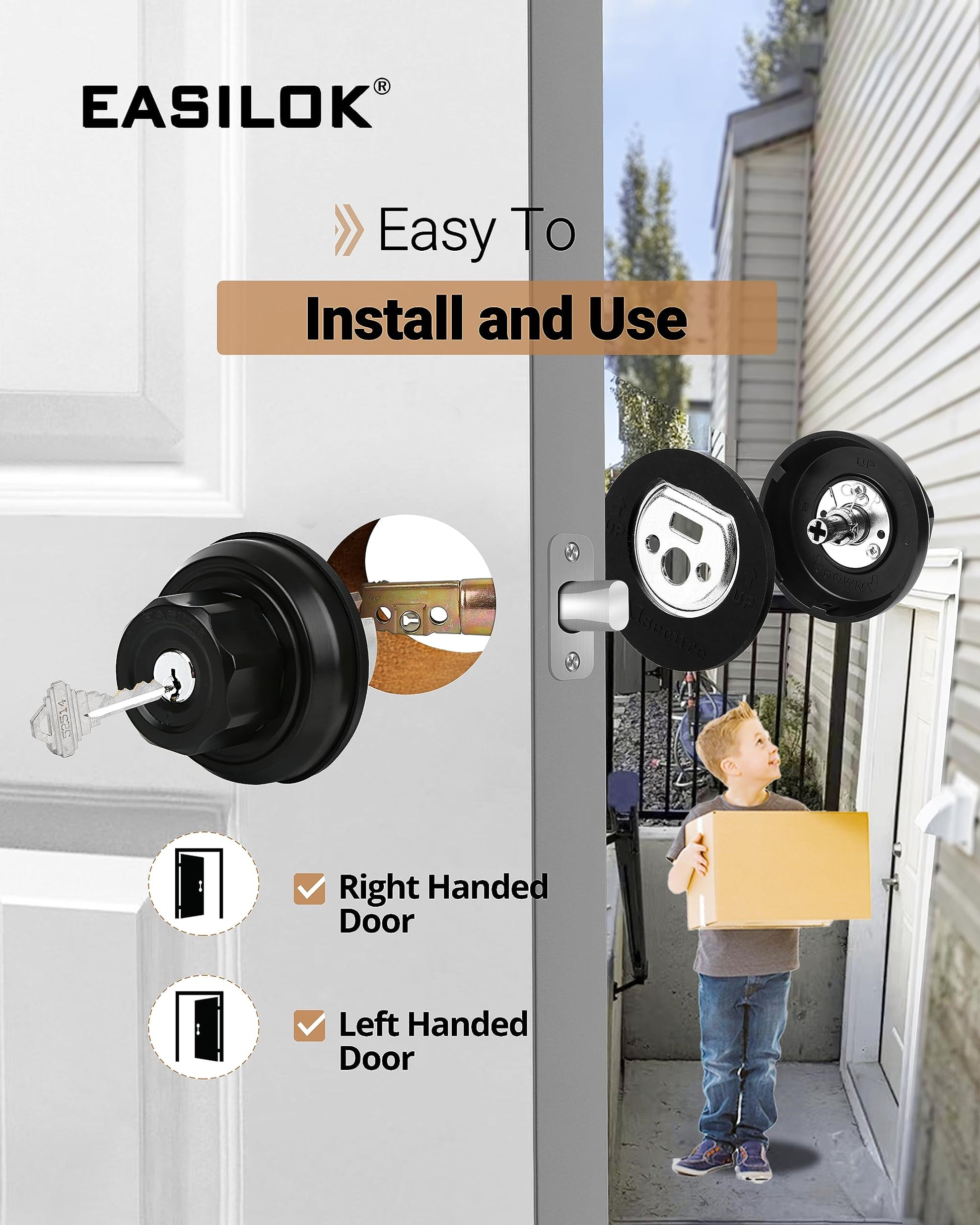 - ππ¨π₯π―π π©ππ’π§ π©π¨π’π§π π: EASILOK has an Integrated Cylinder Mechanism. Typical deadbolts consist of two exterior parts. Our lock is a single integrated exterior unit, to provide protection from prying. The inside twist-on mounting plate makes interior and exterior installation a breeze, and comes with a rubber gasket to prevent door scratches.