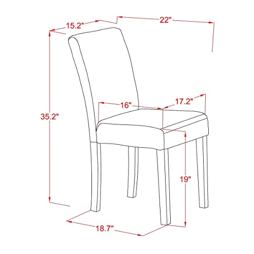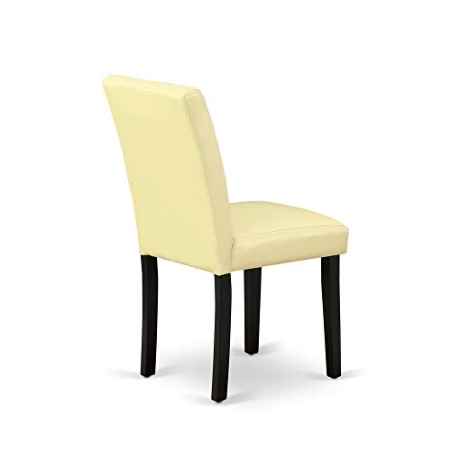 Details: EAST-WEST FURNITURE- DLAB5-BLK-73 - 5-PIECES DINING ROOM SET Gorgeous 5-piece modern dinette set for your beautiful dining room. This wood dining table set includes 4 attractive kitchen chairs and a marvelous two 9-inch drop leaves dinette table. This dining room table set will enhance the magnificence of your dining room with its timeless design. Our parson's dining room chairs are fabricated of good quality PU Leather, which gives complete comfort and an excellent sitting experience. The kitchen set offers a black hardwood dinner table and structure and a lovely Eggnog PU Leather parsons dining room chairs seat and back that bring elegance to your dining room and improve the beauty of your wonderful dining room. Our small dinette set gives good durability because this is constructed with Asian wood, which is also known as Rubberwood. We have made these kitchen chairs and Pedestal dining table with the help of highly experienced carpenters, that delivers a smooth and high-end finish to this wood dining table set. These classy parson’s chairs and kitchen table are easy to Assemble if you assemble this kitchen dining table set according to guidance which is included in the package. Our round dining table set is easy to clean. You can clean this kitchen table set with any furniture cleaner. It will just cost you a little time. The wood dining table set is very easy to clean and usually delivers a fresh appearance. PRODUCT FEATURES Fabric: PU Leather Fabric Color: Eggnog Wood Color: Black Dining Table Dimension: Length: 42; Width: 42; Height: 29.5. Dining Chairs Proportions: Length: 22; Width: 17.20; Height: 35.2 Package Include: 4 Dining Room Chairs and A Pedestal Table.
