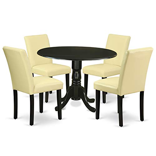 East West Furniture DLAB5-BLK-73 5 Piece Dining Table Set for 4 Includes a Round Kitchen Table with Dropleaf and 4 Eggnog Faux Leather Upholstered Chairs, 42x42 Inch, Black