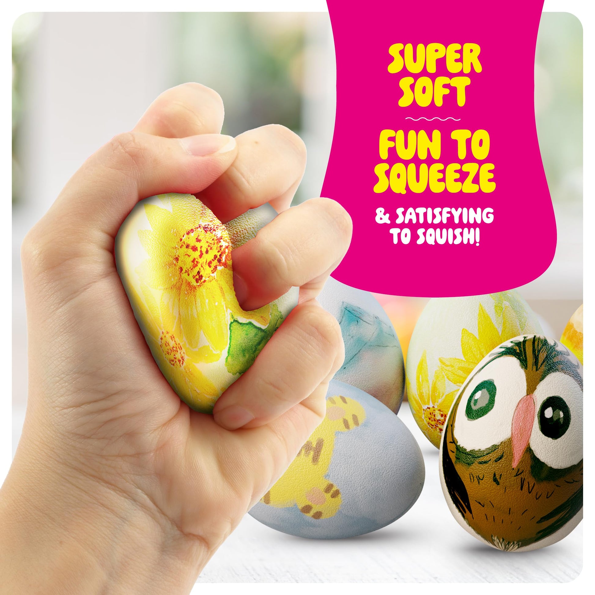 - Super-squishy slow-rising material: The eggs are made from premium materials to ensure a feel-good squeeze and extra slow-rising motion.