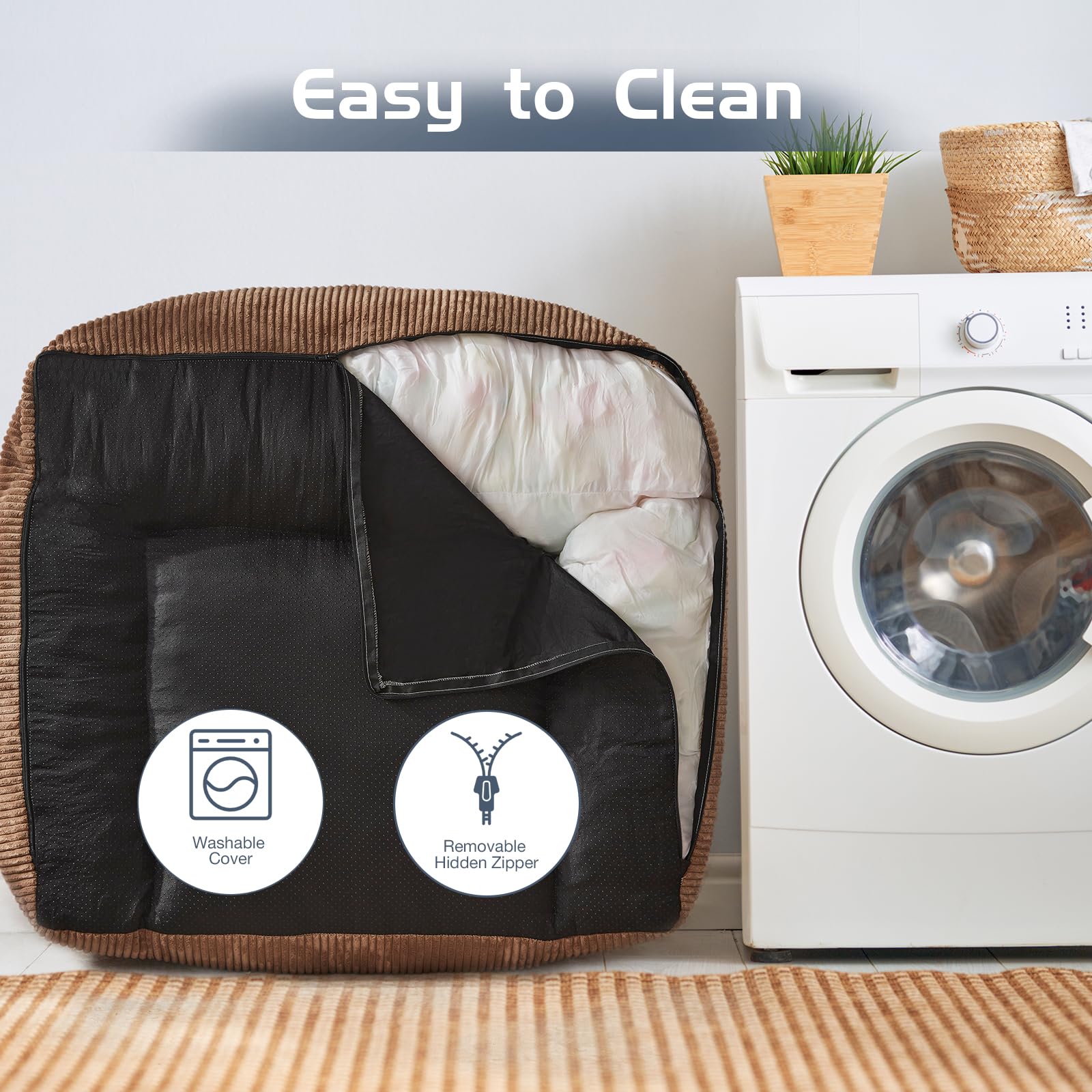 - 【EASY TO CLEAN】: The bottom of the cover is removable with zipper and put in the washing machine, can be easily cleaned and replaced, which can keep the bean bag chair clean.If there are small stains, simply wipe gently with a soft wet towel.Feel free to contact us if you have any problem.