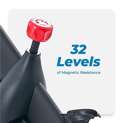- FEATURES and PERFORMANCE: 32 levels of silent precise resistance lets you vary your workout intensity - Fully adjustable toe cages on the pedals for a secure fit - Extra-large cushioned seat offers comfortable riding - Powder-coat frame for resistance to scratches - Padded handlebars are slip-resistant.