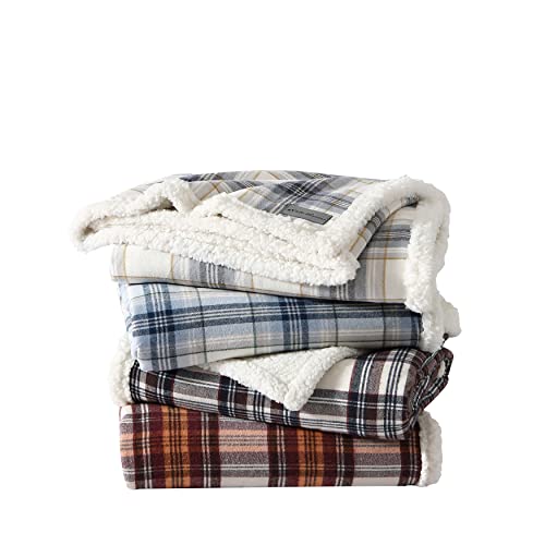 - FEATURES: Throw Blanket features a faux shearling trim and a signature Eddie Bauer logo patch; Throw is wonderfully soft and warm as a go-to throw or for the foot of your bed; Choose between Eddie's many pattern and style options; Lightweight, easily packable, and ideal for travel