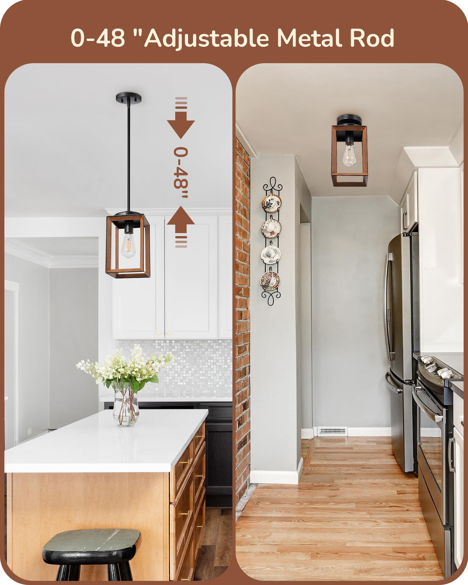 - [Exquisite Appearance] This pendant light kitchen island features a three-dimensional wood grain finish metal lampshade, with an understated sophisticated finish by manual paint sweeping process; create your house a retro farmhouse vibe, or vintage, modern, industrial style, etc.