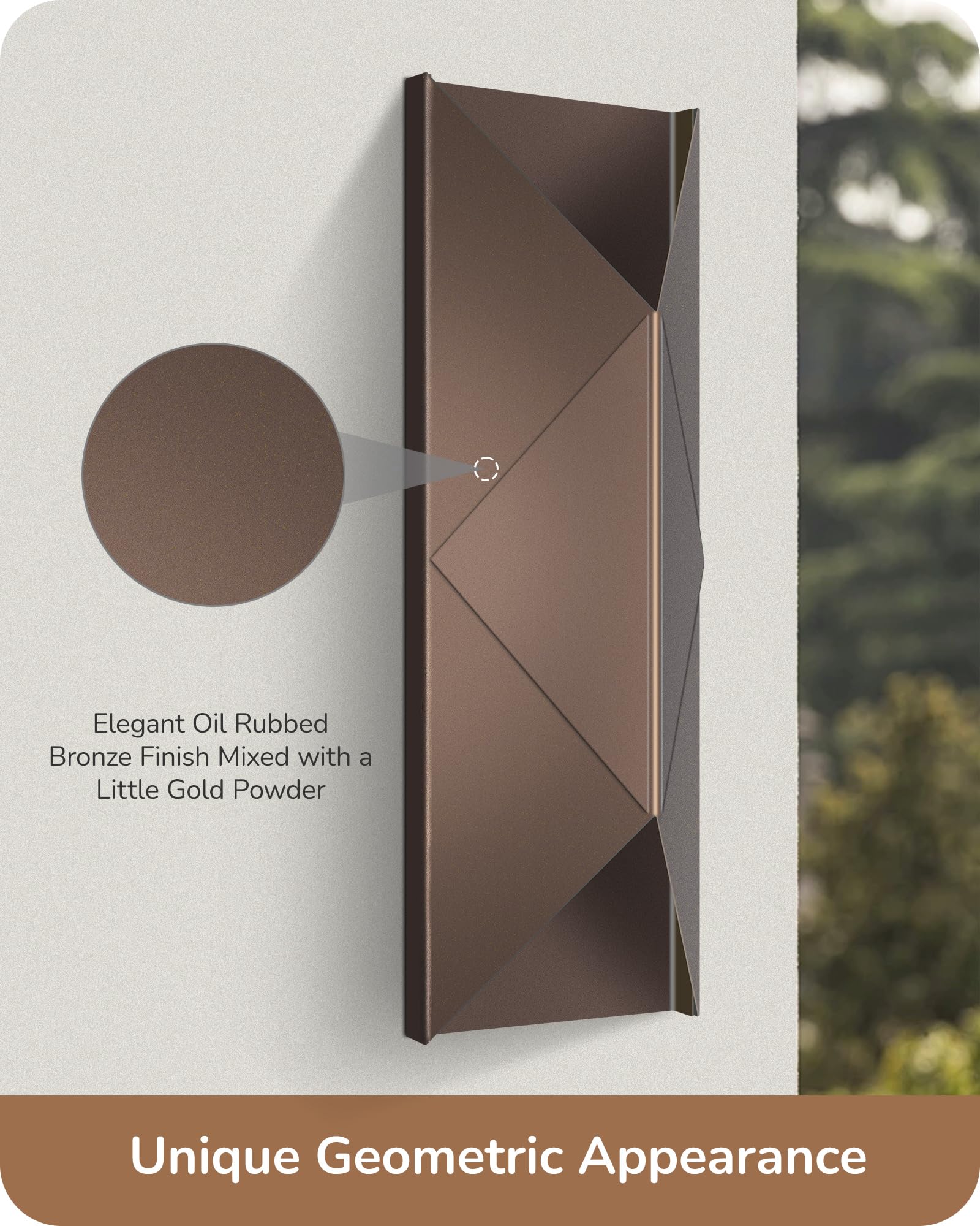 - [Distinctive Modern Design] A fusion of modern geometric elements, combining squares and diamonds with an armor-inspired concept, a unique and stylish appearance; the brown metal surface adds sprinkling golden powder, and it will reflect different color effects under different light, revealing an exquisite color display; the front porch lights come with a sturdy plate for wall installation without any light leakage