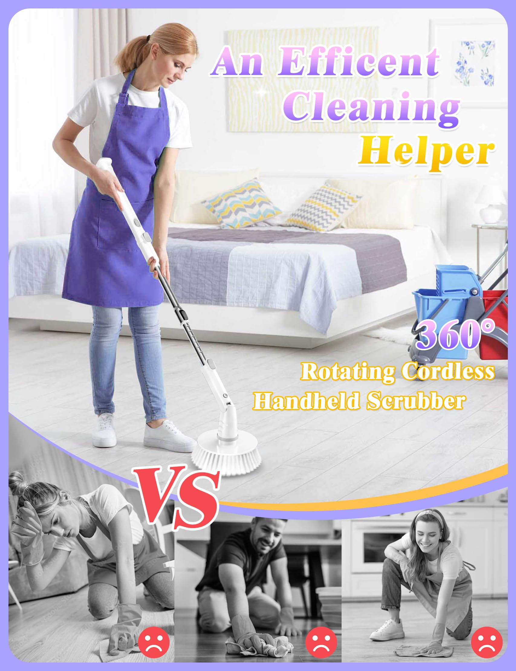 - 【Ergonomic Design | 80% Less Effort】 Struggling with back pain or limited mobility? The Electric Spin Scrubber eliminates bending or kneeling with its Telescopic Handle - reduces cleaning fatigue by 80%. Perfect for seniors, post-surgery recovery, and pregnant users etc.