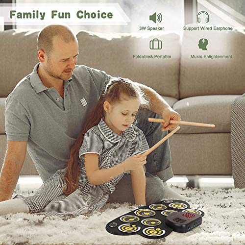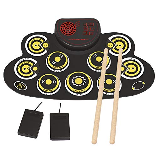 - More Fun with Drum Kit: The versatile setting options allow a lot of different sounds to try out. They can be rolled up when not in use. Buttons allow you to adjust the speed (rhythm and demo); Various drums can be selected and the volume can be changed. The drum pads are sensitive to both fingers and sticks and sound fantastic even with light touch.