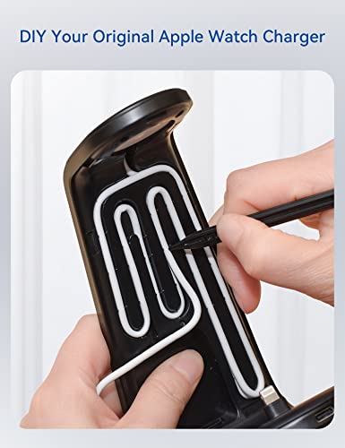 ELEGRP Charging Station for Apple Devices, Charging Stand for iPad Mini, iPhone 14/13/12/11, Airpods, Apple Watch, Charging Cable is Removable and Replaceable, LED, FCC (Black)