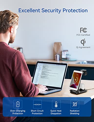 - 【Space-Saving Solution】The 3-in-1 wireless charger is the perfect space-saving solution for your bedside table or office desk. With its compact design, you won't have to worry about messy cords cluttering up your space.