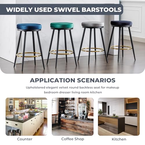 - 【Multi-scene Application】-This swivel velvet bar stool combining a stylish, modern design with unmatched durability can fit both contemporary and traditional room decor. Go well with the dining room, kitchen, living room, entertainment area, rest area, cafe, pub, and other indoor use.
