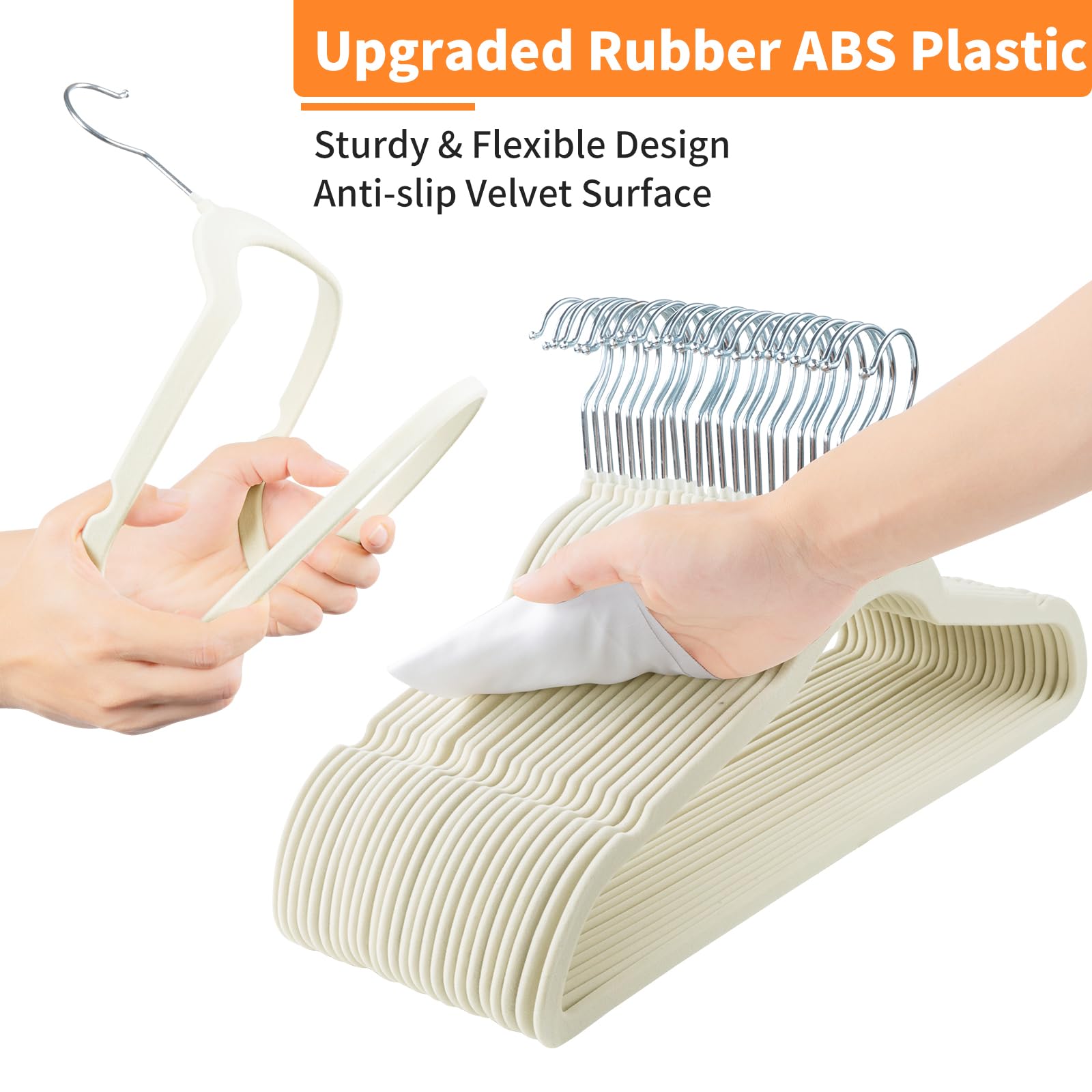 - Durable and Lightweight: Made from materials ABS, velvet hangers are typically lightweight ands durable. They are strong enough to support most types of clothing while being easy to handle and maneuver.