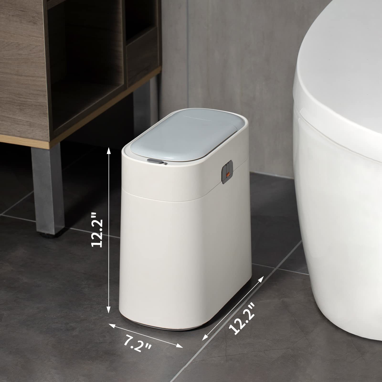 - 3 Gallon Capacity - 3 gallon trash can with press top lid has a space-saving design and rectangular shape making it perfect for any small space such as bathroom, bedroom, office, children's room, RV, living room and other places where space is at a premium. (12.2 L×7.2 W×12 H INCH, 11 LITER)