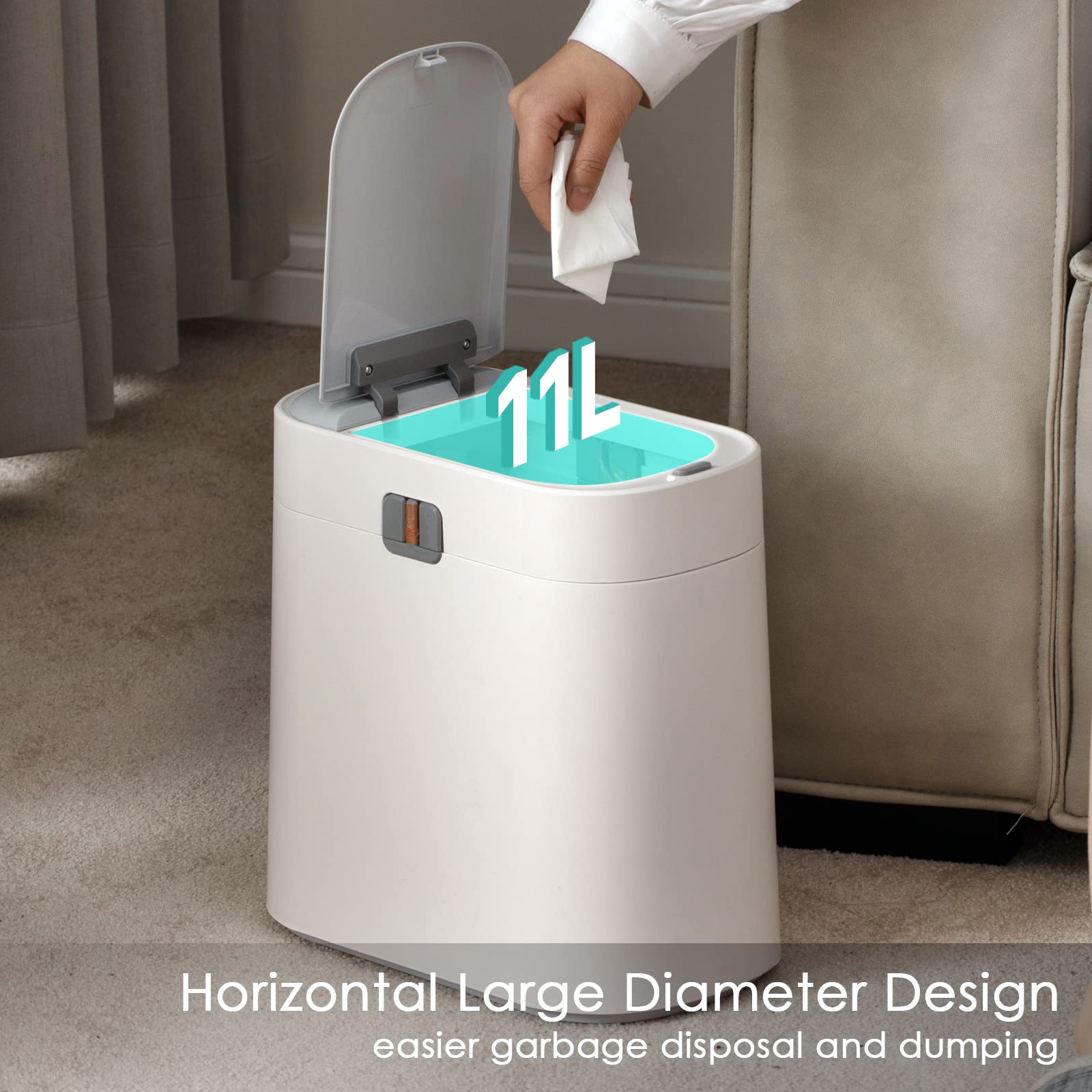- Soft Close Lid - When you press the button at the top of the lid, the lid will open, gently press the lid down with your hand and the lid will close, the horizontal large diameter design also makes it easier to throw the garbage.