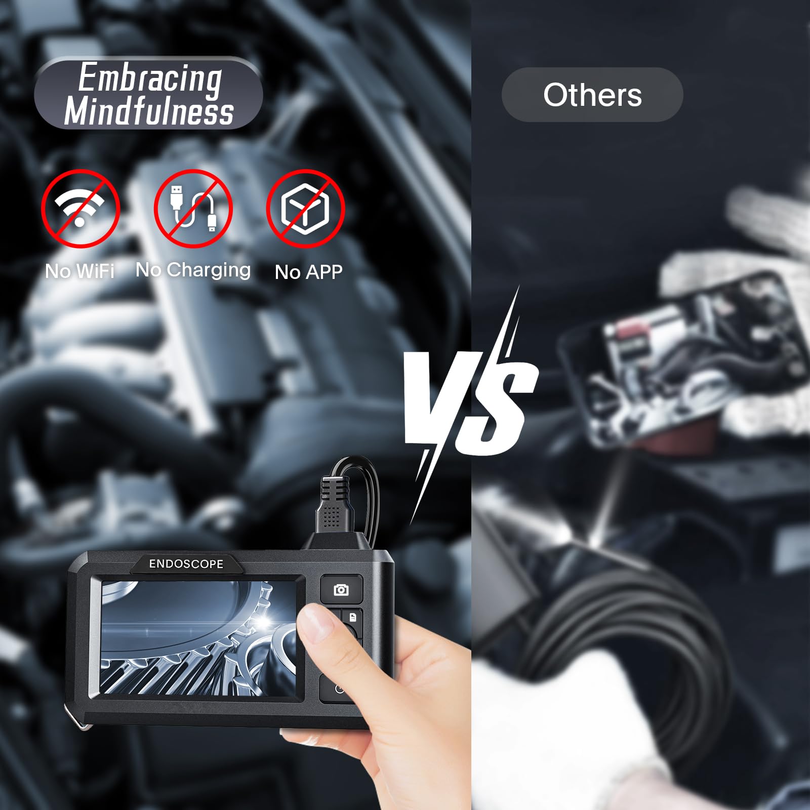 - 【4.3-Inch Color Screen】The endoscope can take pictures and videos. HD Endoscope camera with a 4.3-inch color LCD screen that allows you to view high-definition images in real time. Easy to operate, you can use it immediately when it is powered on. No need to use your smartphone to connect to the WIFI and no need to download any driver software. So you do not need to worry about dirtying your expensive phone at work too.