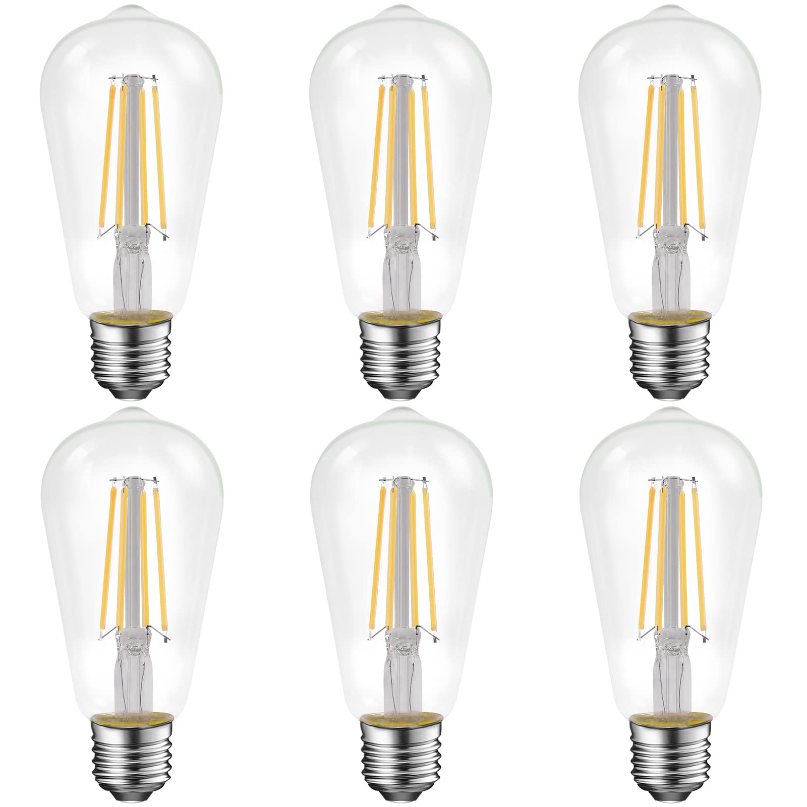 Energetic Dimmable LED Filament Light Bulbs, High Brightness, 8W, 60 Watt Equivalent, ST58 ST18, Daylight 5000K, Classic Clear Glass, 6 Pack
