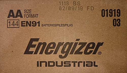 Energizer EN91 Industrial Alkaline Batteries, AA (Box of 144 Batteries) - Made in The USA or Singapore