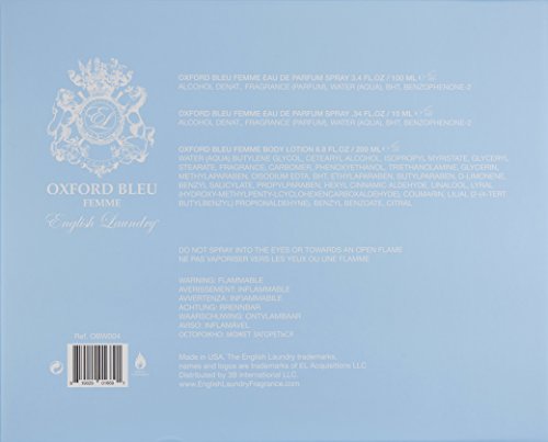Oxford Bleu Femme 3 Pc. Gift Set ( Eau De Parfum Spray 3.4 Oz + 0.34 Oz. Body Lotion 6.8 Oz. ) for Women by English Laundry