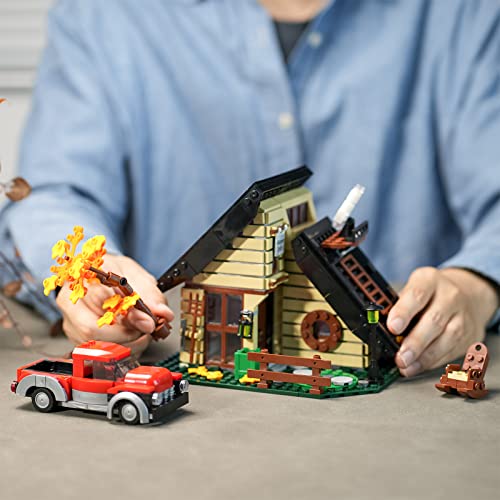 ENJBRICK A-Frame Cabin Building Set Compatible with Lego Architecture for Adutls, Friends Autumn House for Girls 8-14 Years Up 696pcs