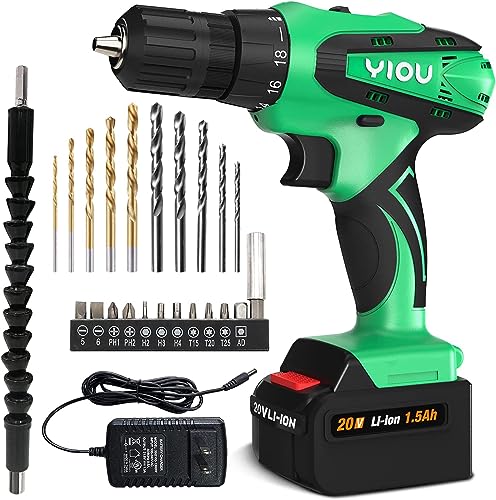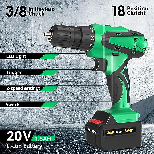 ENZOO 20V Cordless Drill, Electric Power Drill Set with Battery and Charger+23 pc. Impact Driver/Drill Bits, 3/8" Keyless Chuck, 2 Variable Speed, 248 In-lb Torque, 18+1 Position