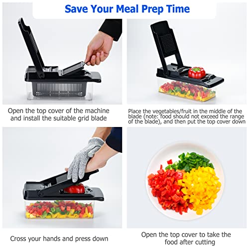 - 【IMPROVES YOUR HEALTH AND SAVES TIME】Busy lifestyles make us fall into the fast-food trap. Dicing, chopping and slicing ingredients before a meal can take a lot of time and effort. Our multifunctional tools reduce the time consuming process, such as tomatoes, cabbage, onions, garlic and more. The new upgraded vegetable food chopper makes it easier to add vegetables to your diet, adding variety to your family meals and not missing out on any important nutrients.