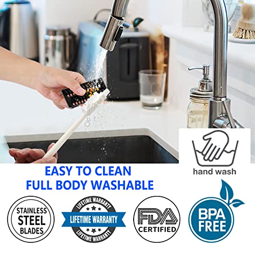 - 【FOOD GRADEMATERIAL & STAINLESS STEEL BLADE】Onion Chopper are made of durable 402 stainless steel material, and the manufacturing technology of stamping blade can ensure the sharpness of the blade to a great extent, so that it can cut and grind smoothly.