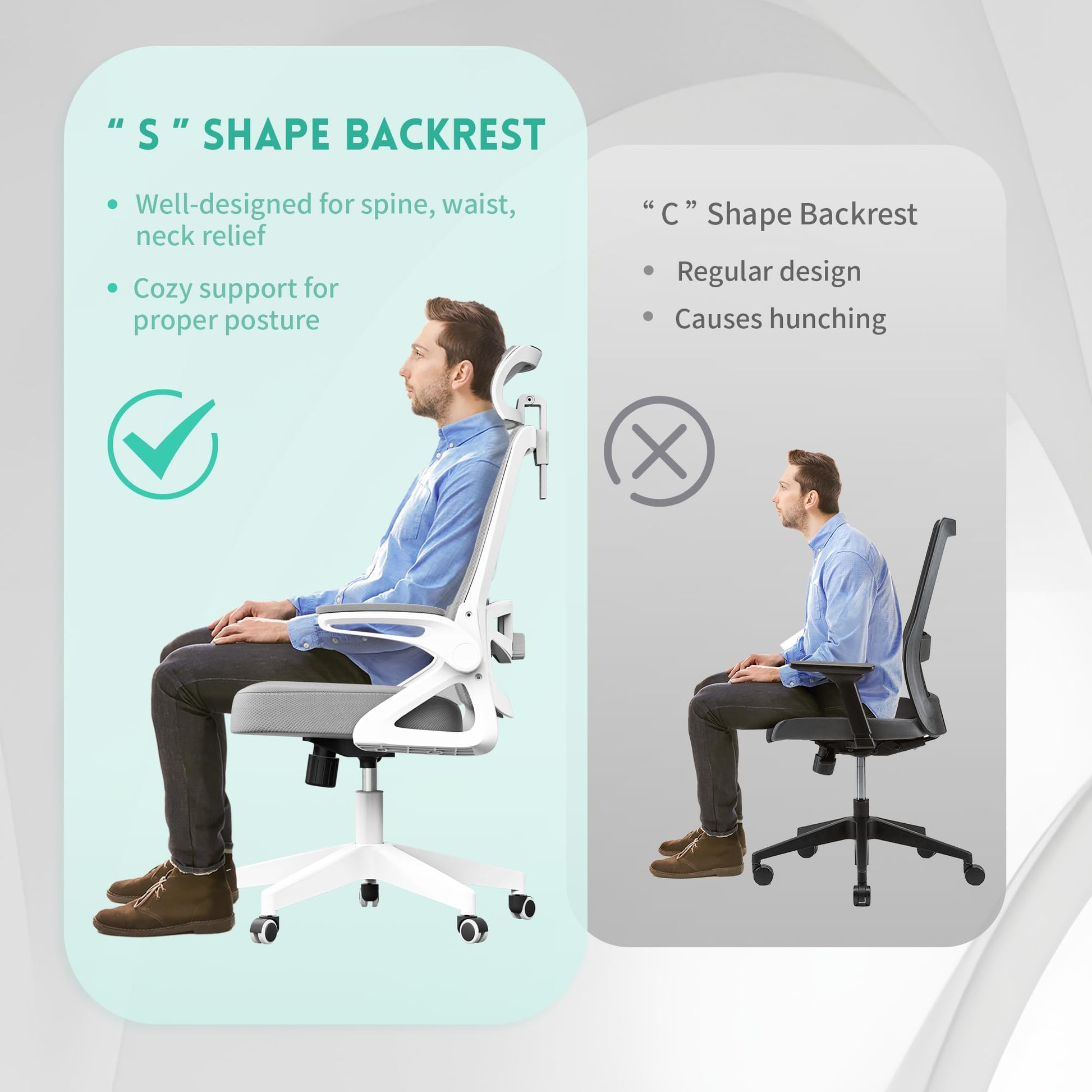- 【Ergonomic Design】The S-shaped curve of the chair aligns perfectly with the natural shape of your spine, promoting better posture and protecting spinal health. The wider seat offers more room and distributes weight evenly, reducing pressure on your hips and lower back.