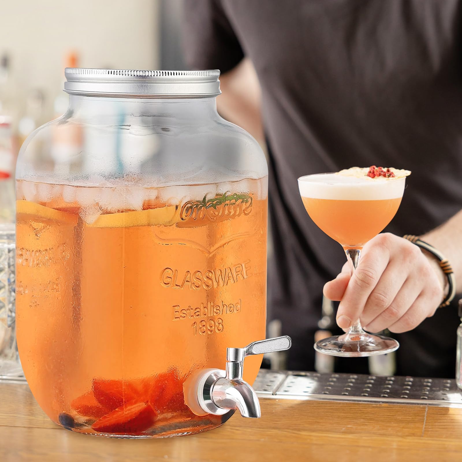 Eshly 1-Gallon Drink Dispenser Glass Beverage Dispenser with Spigot Laundry Detergent Dispenser Juice Lemonade Dispenser for Parties- Serveware for BBQ, Picnic, Pool Party