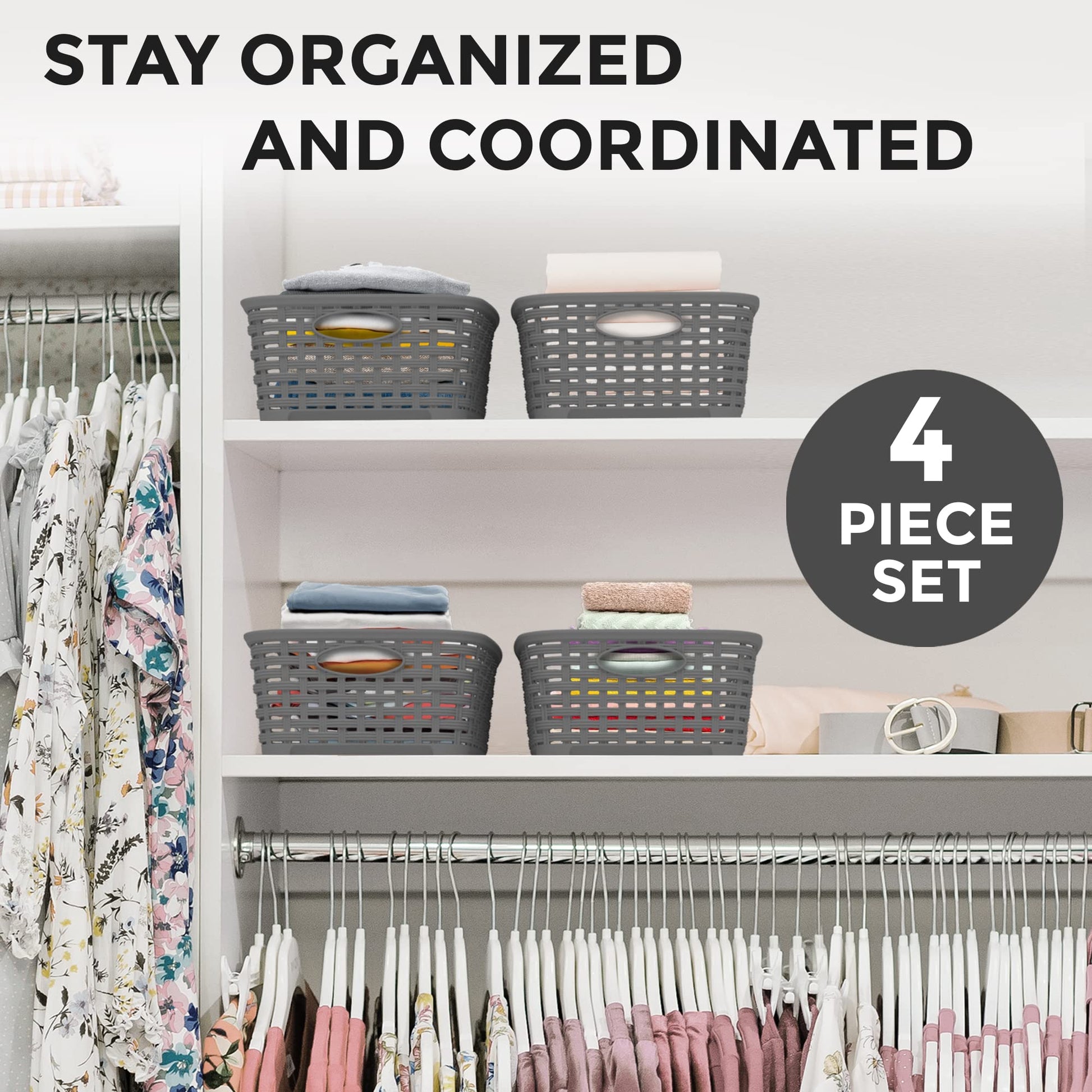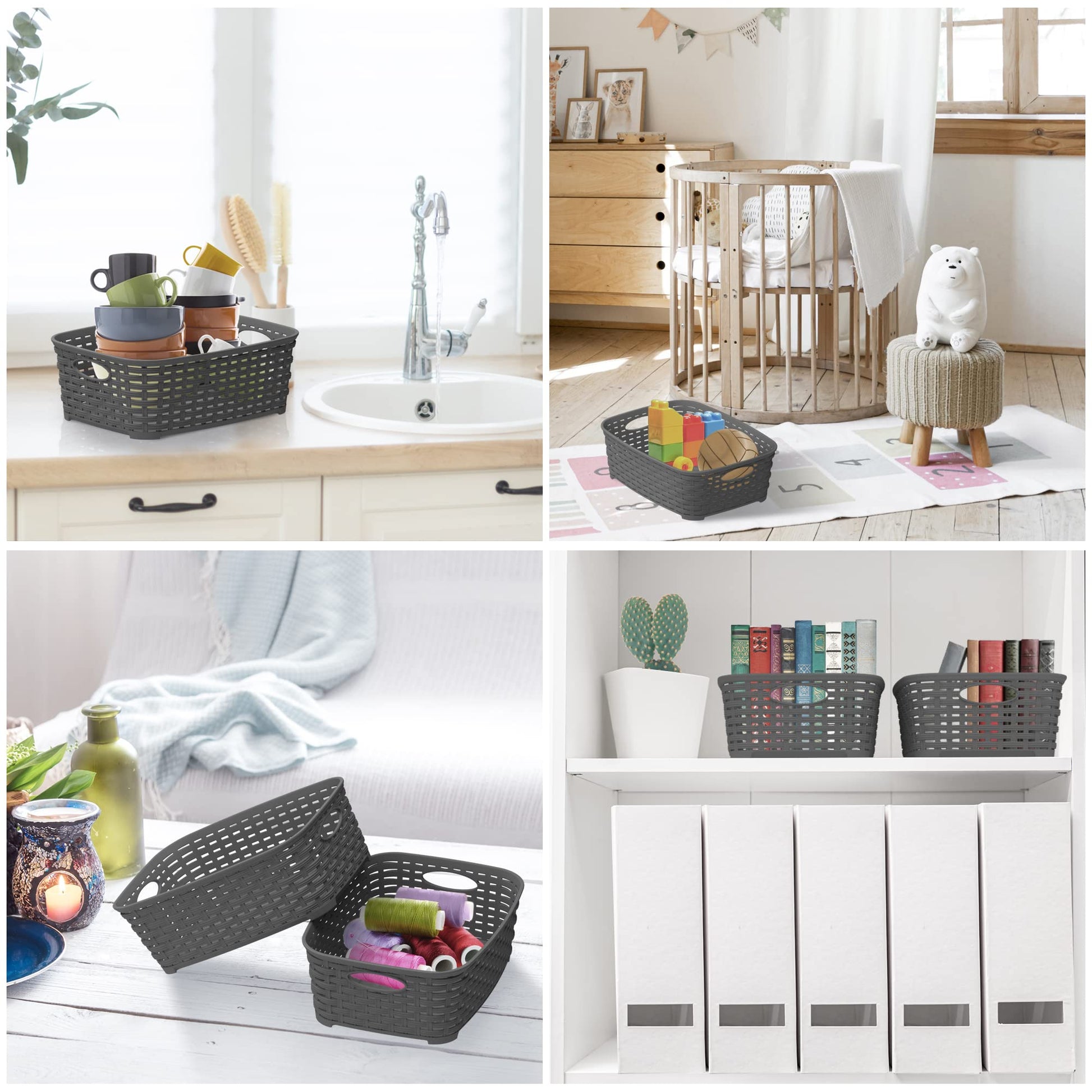 European Made Plastic Storage Bins, Heaviest Duty, Household Organizers for Bathrooms, Bedrooms, Kitchens, Laundry Room, Cabinets, Shelves, 4 Pk, Dark Grey