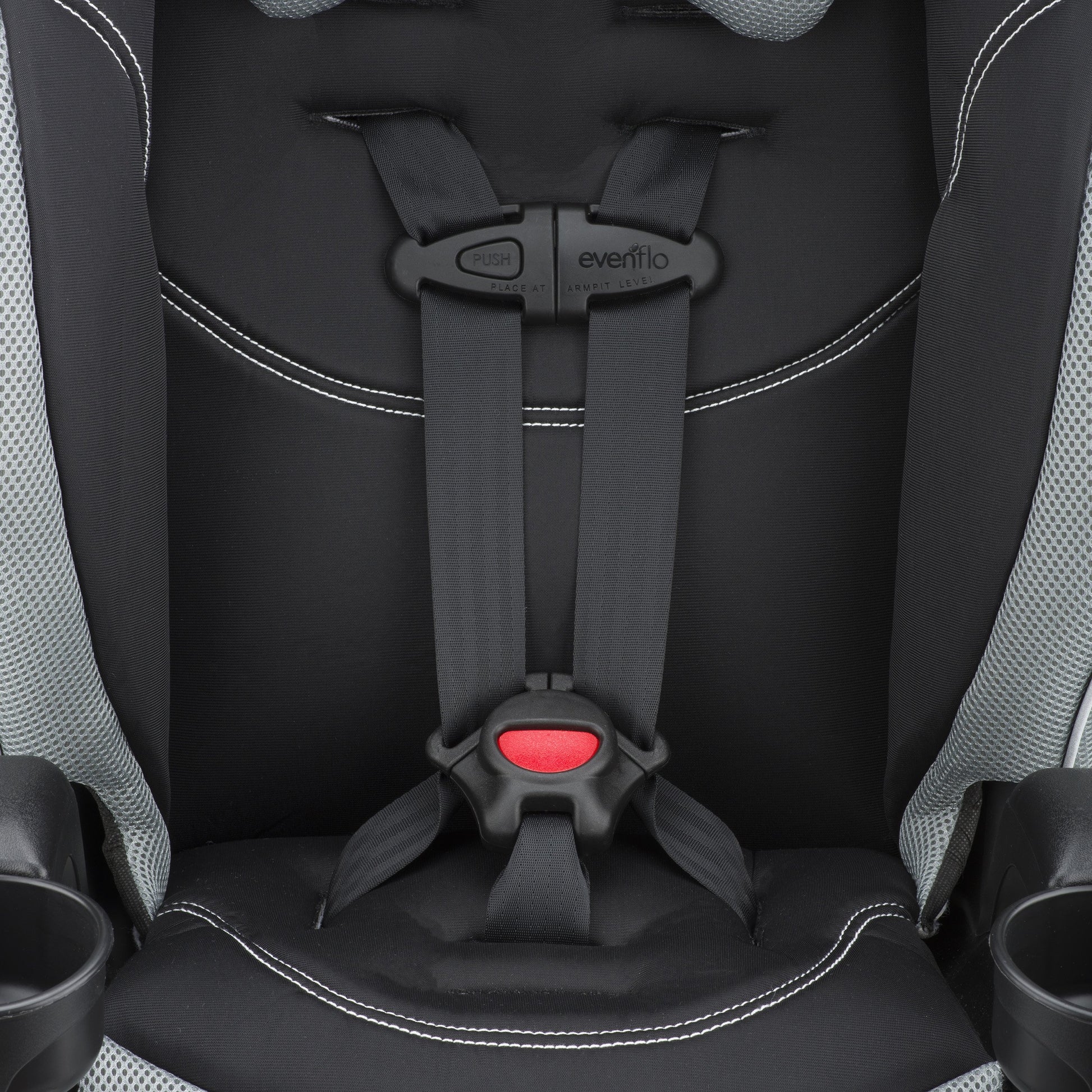 Details: The Evenflo® Chase® Harnessed Booster features an innovative headrest design that allows the vehicle belt to self-adjust to your child’s height while in booster mode. Enhanced side walls and head support provide comfort and safety for the child. Sporty style elements appeal to children, as will the integrated cup holders with flexible stripe design. The seat accommodates children ranging from 22-110 lbs. This combination booster provides an exceptional value for a seat with such a wide array of innovative features.