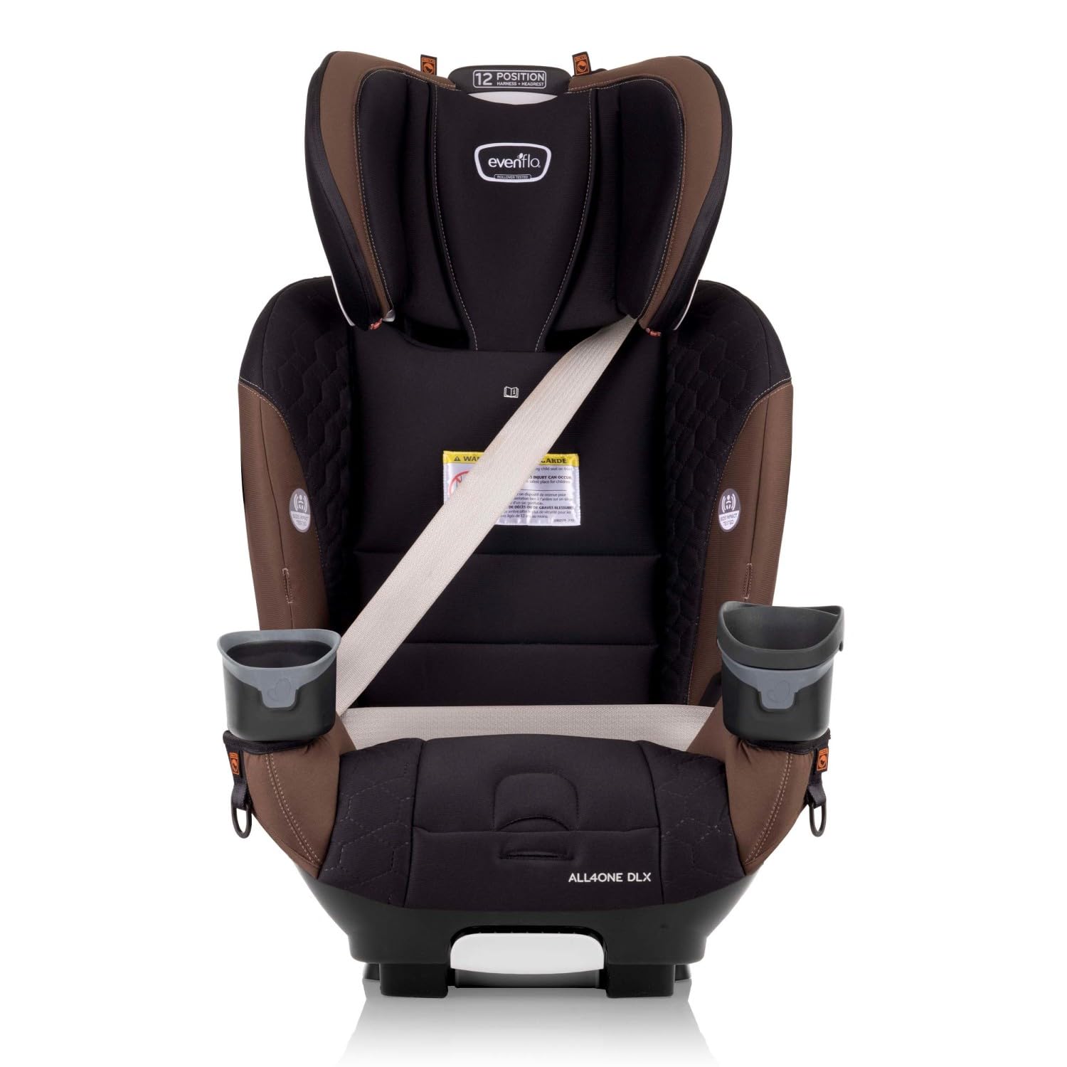 Details: The Evenflo® EveryFit™/All4One™ 3-in-1 Convertible Car Seat with Quick Clean Cover has been engineered for maximum comfort, safety, and longevity. This car seat accommodates your child by adjusting to multiple positions, allowing kids to ride rear-facing beyond 2 years of age — without extending the seat or cramping other passengers. This all-in-one car seat provides a safe and secure ride for up to a decade. Parents and grandparents love the Quick Connector™ LATCH and belt guides for an easy and tight installation. It can be used as a rear-facing car seat with harness, forward-facing car seat with harness and belt-positioning high-back booster that helps keep children 4 - 120 lb secure while riding in a vehicle. The EveryFit/All4One 3-in-1 meets or exceeds all applicable federal safety standards and Evenflo’s side impact standard. It is designed and tested for structural integrity at energy levels approximately 2X the federal frontal crash test standard. Evenflo works with parents to develop child-restraint products that are designed for how they are actually used. We’ve developed this 3-in-1 car seat with comfort, safety and ease-of-use in mind. The one-hand, 12-position headrest and no-rethread harness enable a proper fit during each ride and as the child grows – without uninstalling the car seat. For additional convenience, this all-in-one car seat is designed with two integrated cup holders and a removable snack tray. Because life is messy, it also includes a convenient Quick Clean Cover that’s easy to remove and easy to wash. Families have trusted Evenflo® for more than 100 years for smart, innovative gear designed to make life easier, safer and more comfortable at home and on the go. We believe every moment with your growing little one counts — that’s what drives us to find new ways to simplify the work of parenting and caretaking. With the time and peace of mind you need, you can focus on what matters most: your child