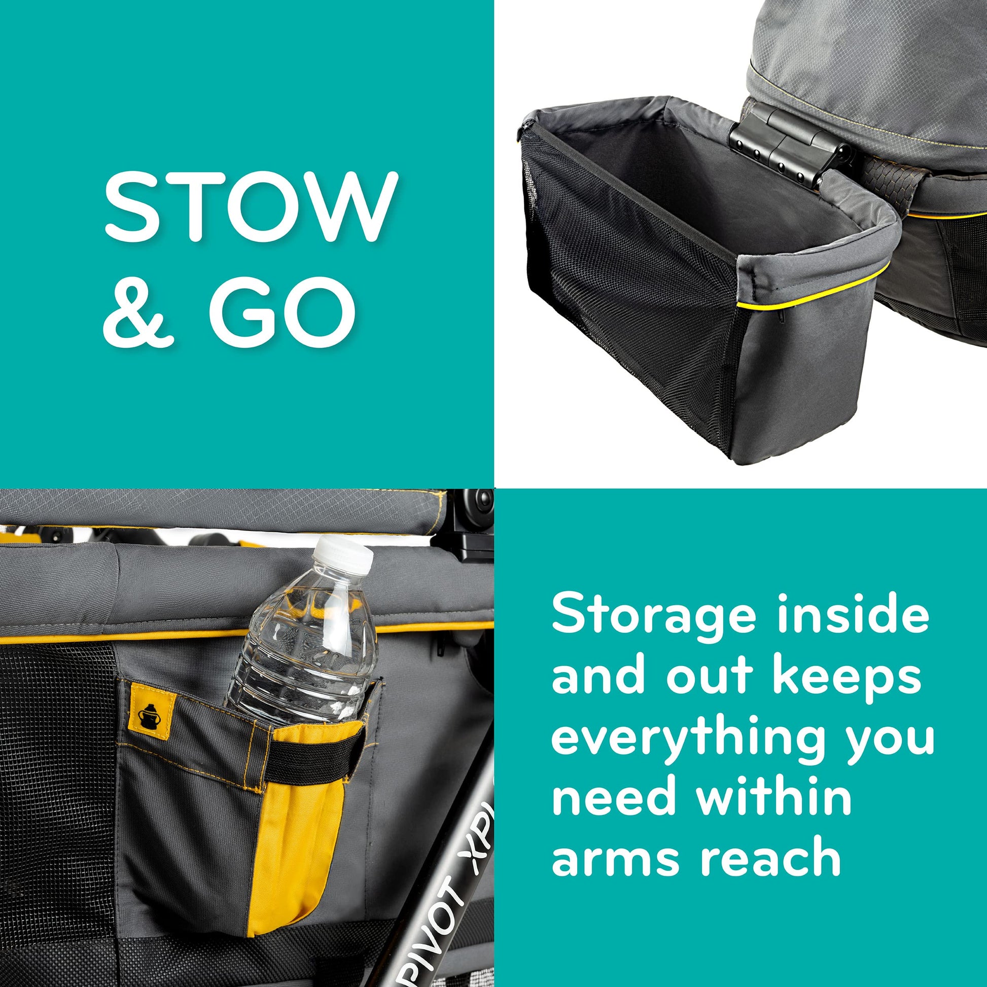 - STOW AND GO: Storage inside and out keeps everything you need within arm’s reach — from water bottles to diaper bags