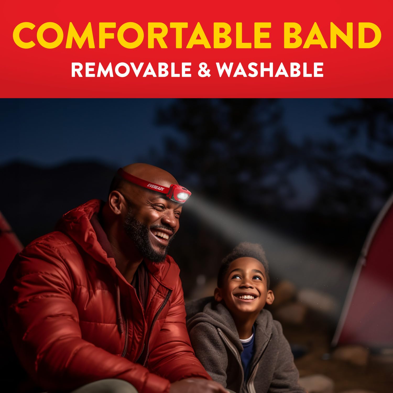 - POWERFUL RECHARGEABLE HEADLAMP: Value pack of two Eveready X200 Rechargeable LED Headlamps that illuminate up to 50 meters with 200 lumens of bright LED light, so you can light up the room, campsite or work area with ease