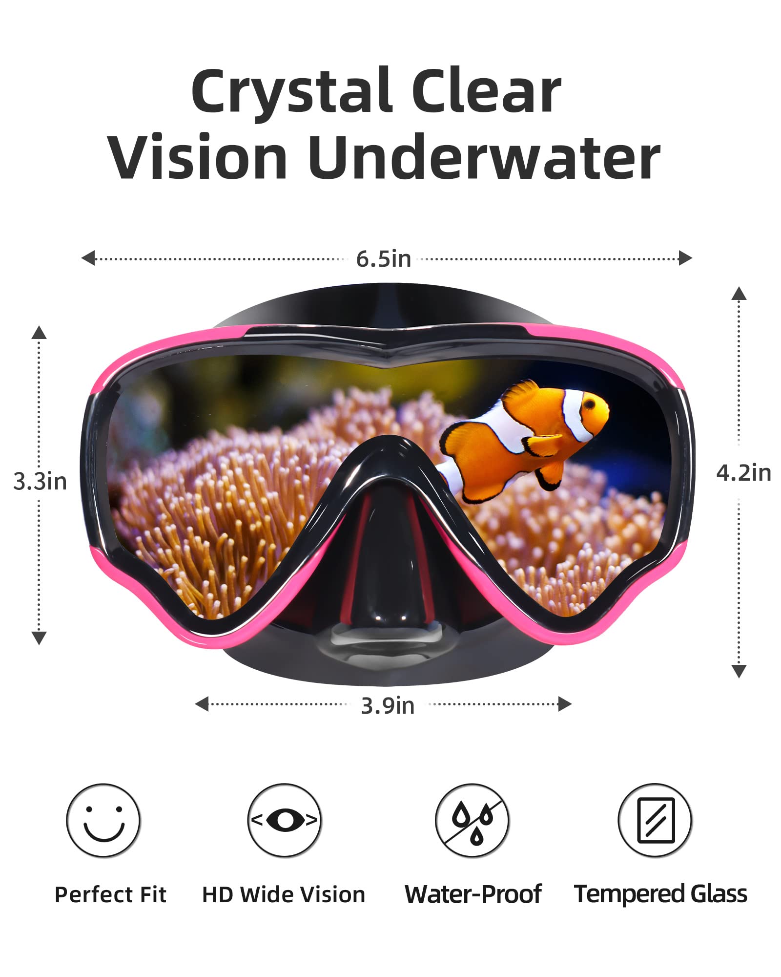 - 【Premium Silicone No Leak】Made of soft food-grade silicone, the skirt of adult swim mask offers a comfortable and watertight seal for various facial shapes. The non-toxic silicone is gentle enough for sensitive skin and doesn't leave any marks on the face.