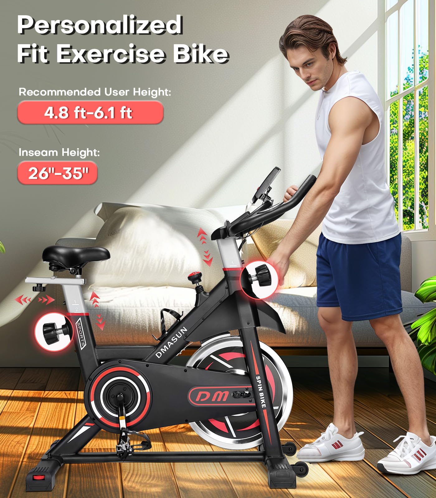 Exercise Bike, DMASUN Classic Brake Pad Stationary Bike for Home with 300 LBS Capacity, Indoor Bike with Comfortable Seat Cushion, Digital Display with Pulse