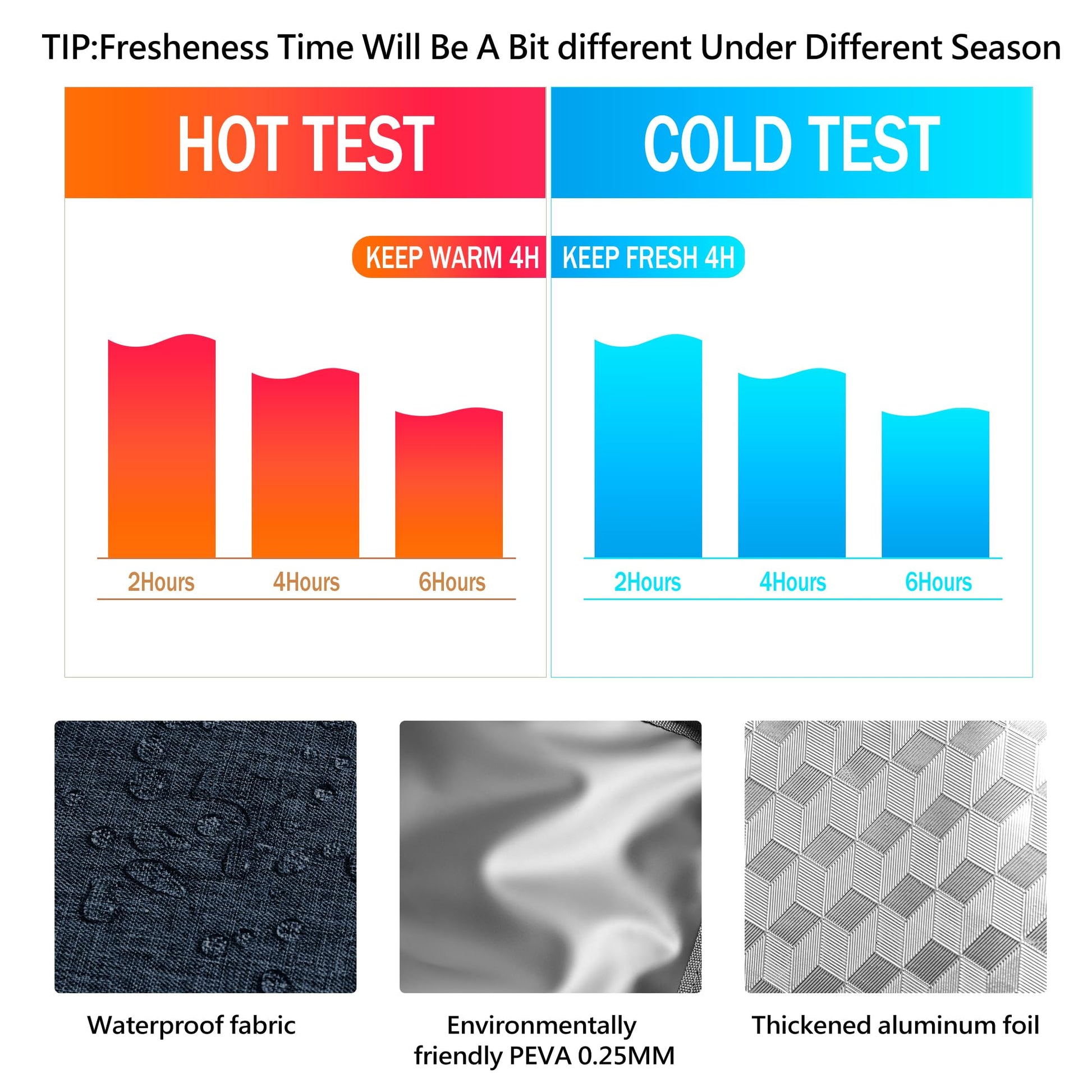 - 100% LEAKPROOF & EASY TO CLEAN: Reusable Lunch Box is made of Thickened environmentally friendly PEVA liner without splicing to prevent leakage, lined smooth and easy to wipe clean. which can keeps your food cold or hot for up to 4 hours. The expanded upper layer is a thickened aluminum foil insulation layer. The exterior of Exlifbag lunch bag is made of waterproof fabric and is wear-resistant.