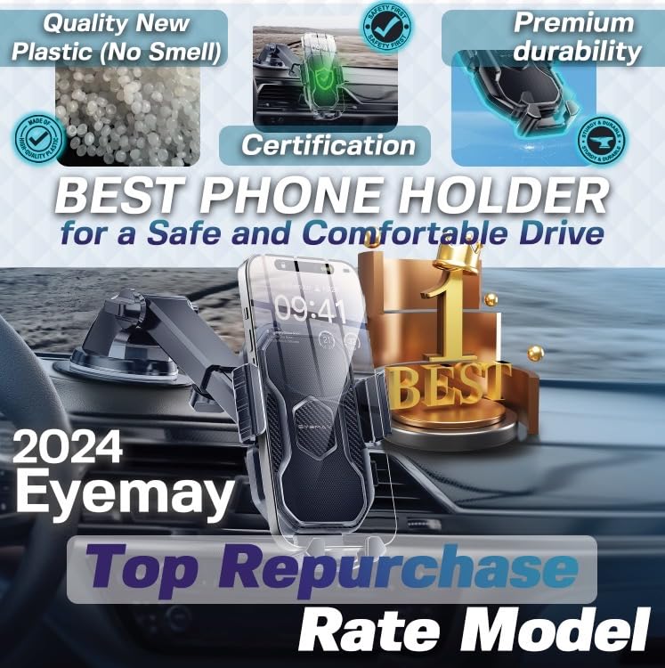 - Safe Driving: Eyemay Car Phone Mount features a 360 degrees rotating ball joint, allowing you to adjust to the perfect angle effortlessly. Whether you're navigating or charging, it ensures a safer driving experience.