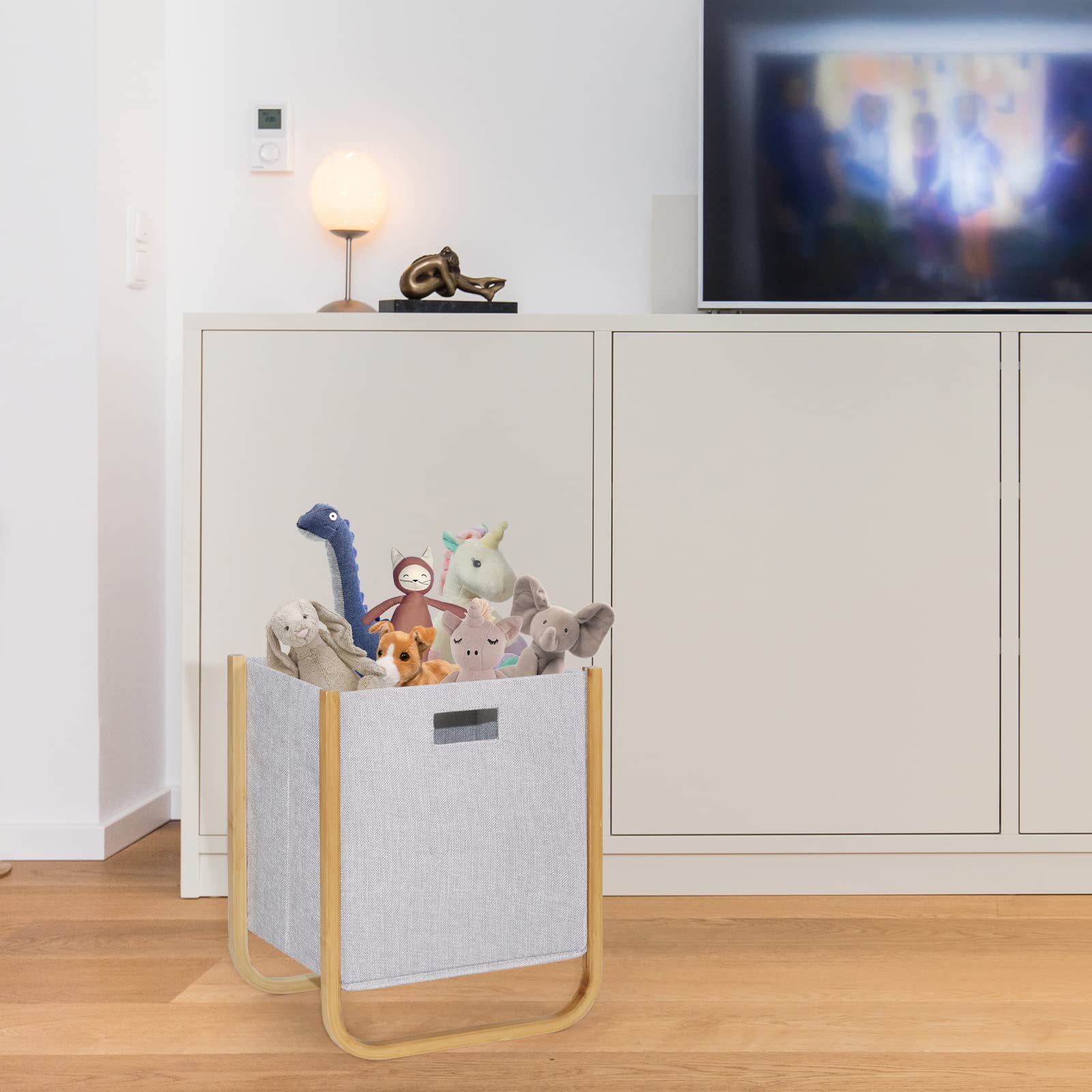EZDeco Laundry Basket with Bamboo,30L Thickened Foldable Hampers for Laundry,Small Laundry Hamper Organization and Storage for RV,Children's Clothes and Toys,Bathroom,Bedroom,Dorm,Room,Sturdy
