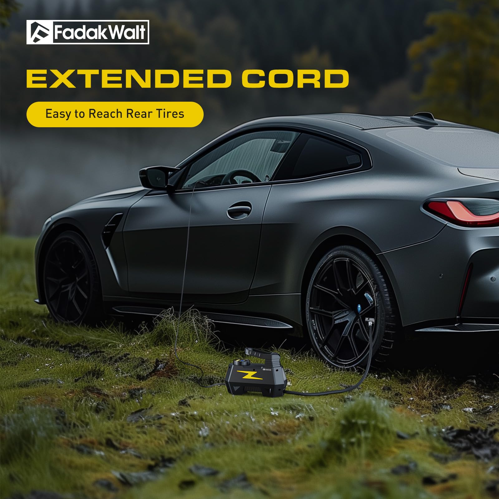 - Get the perfect tool for car -FADAKWALT portable air compressor! It is compact and easy to store. The product comes with a portable box that can be easily placed in the glove box, seat, trunk, etc. The package contains a cool 12V tire inflator, Schrader-Presta valve, 2 fuses, needle valve, extension nozzle and user manual. Rest assured, your purchase comes with a 2-year repair or replacement guarantee. If you have any questions, please contact us - we'll get back to you as soon as possible!