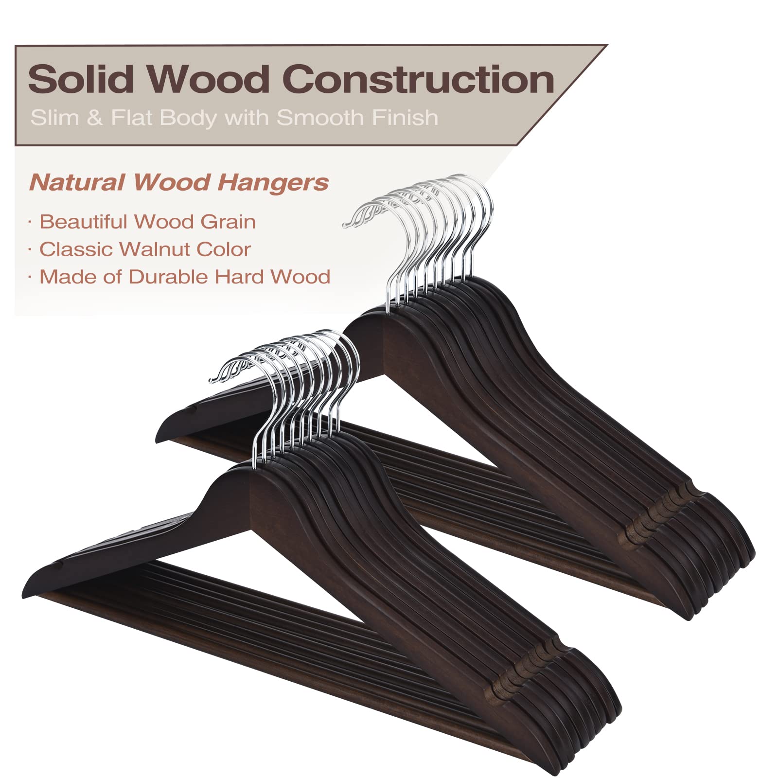 FairyHaus Wood Hangers 30 Pack, Smooth Finish Wooden Coat Suit Hangers with 360° Swivel Hook and Notches, Lightweight Walnut Wood Clothes Hangers for Camisole, Pants, Dress