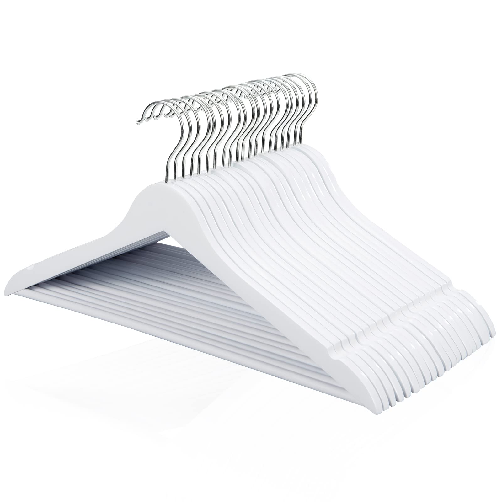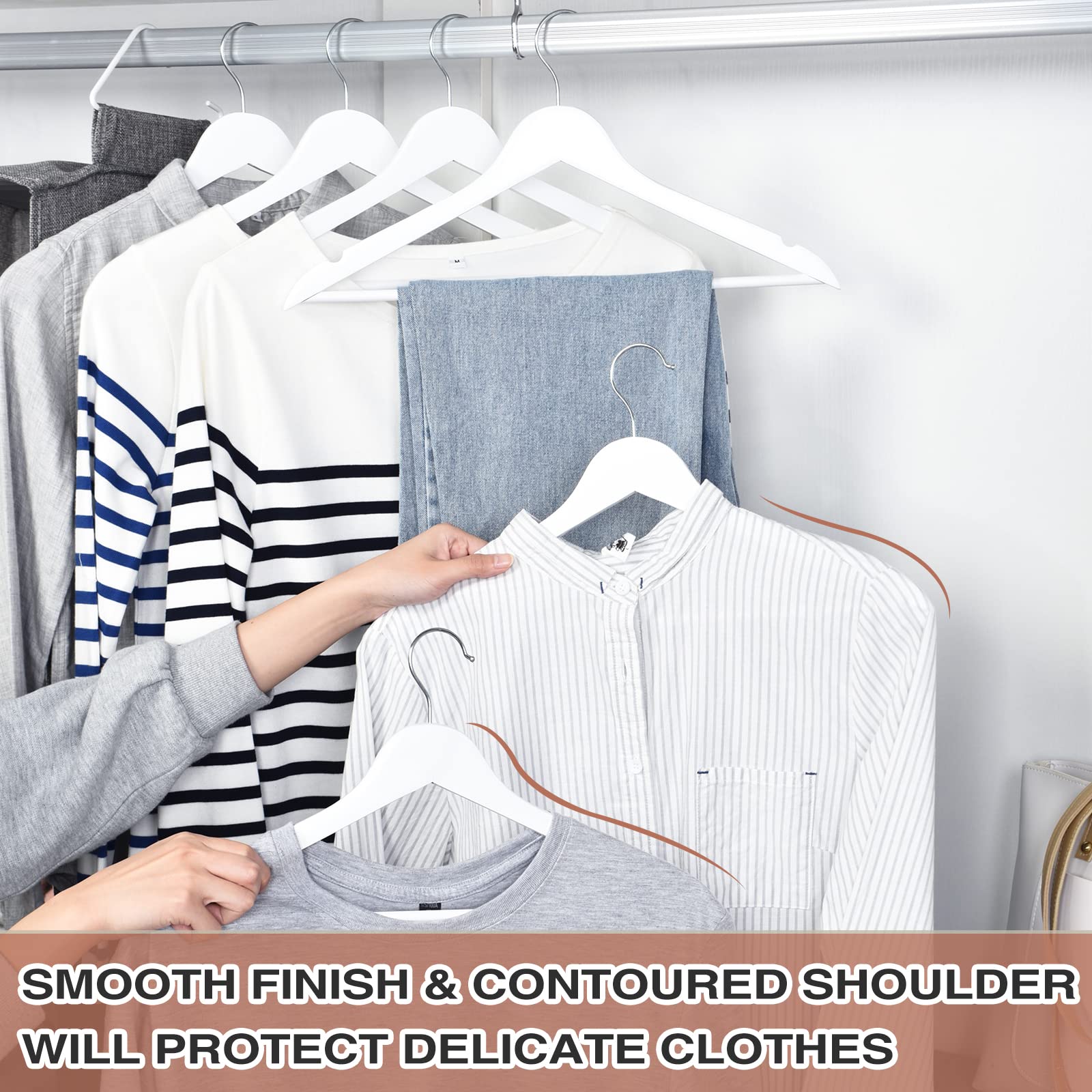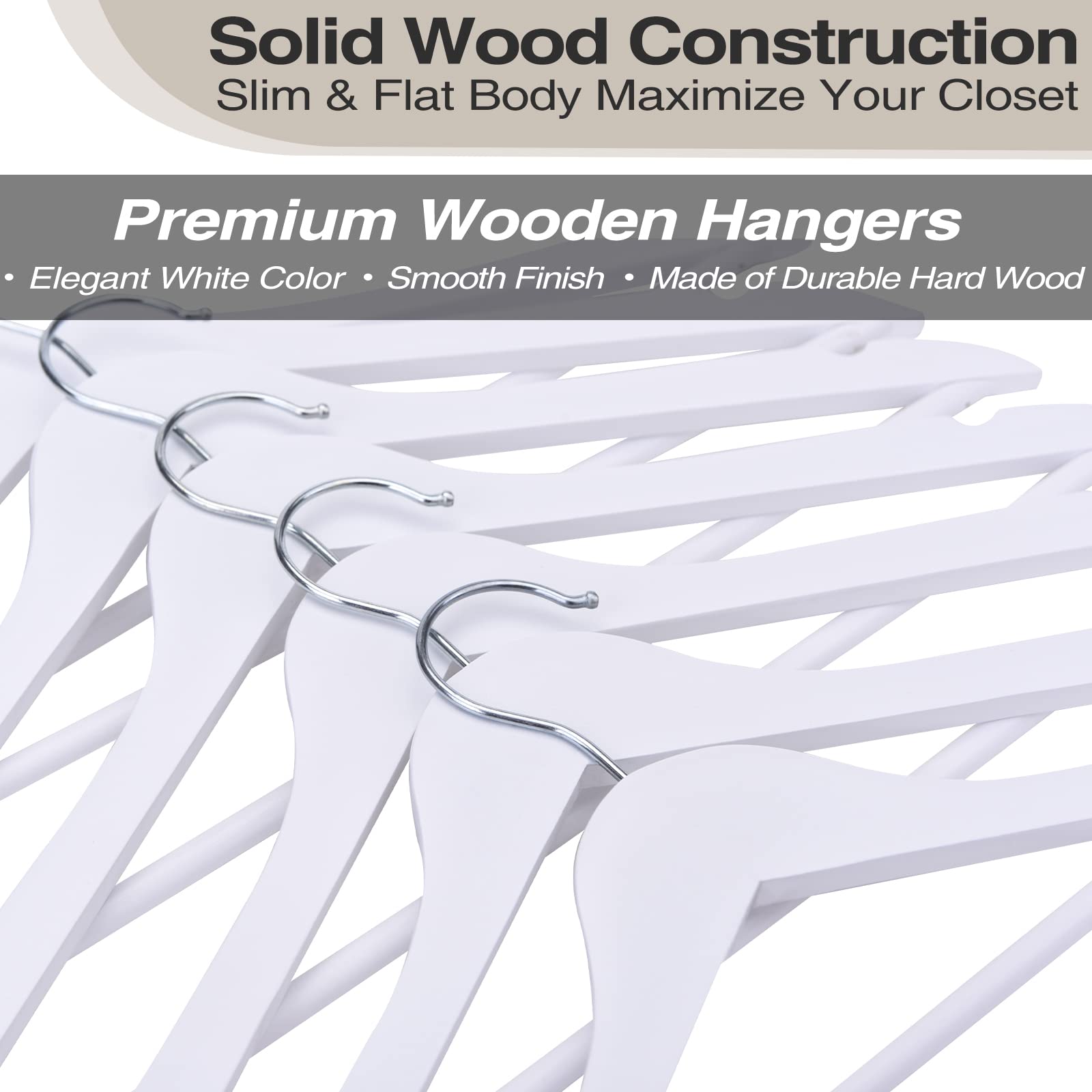 - Eco-friendly Coating: White wooden hangers coated with eco-friendly water-based paint for added protection decorates without unpleasant smell. Brighten up your closet with elegant white wood hangers.