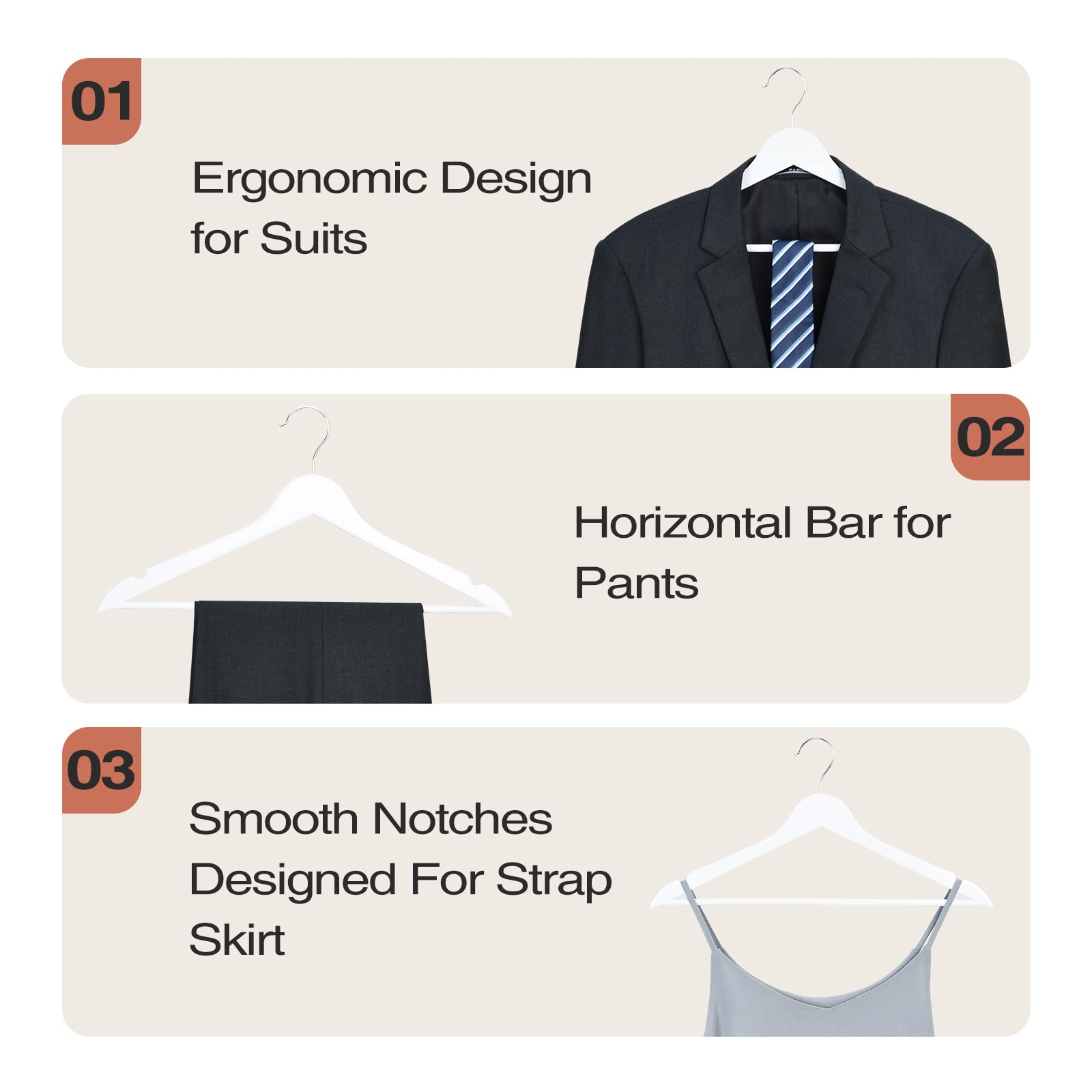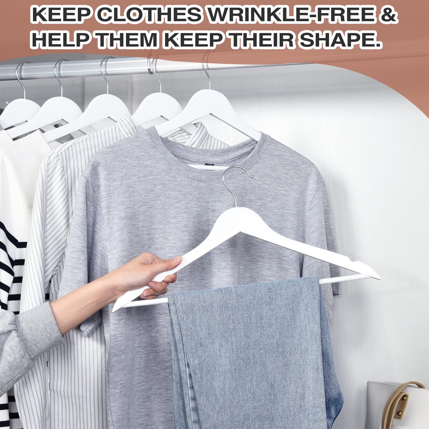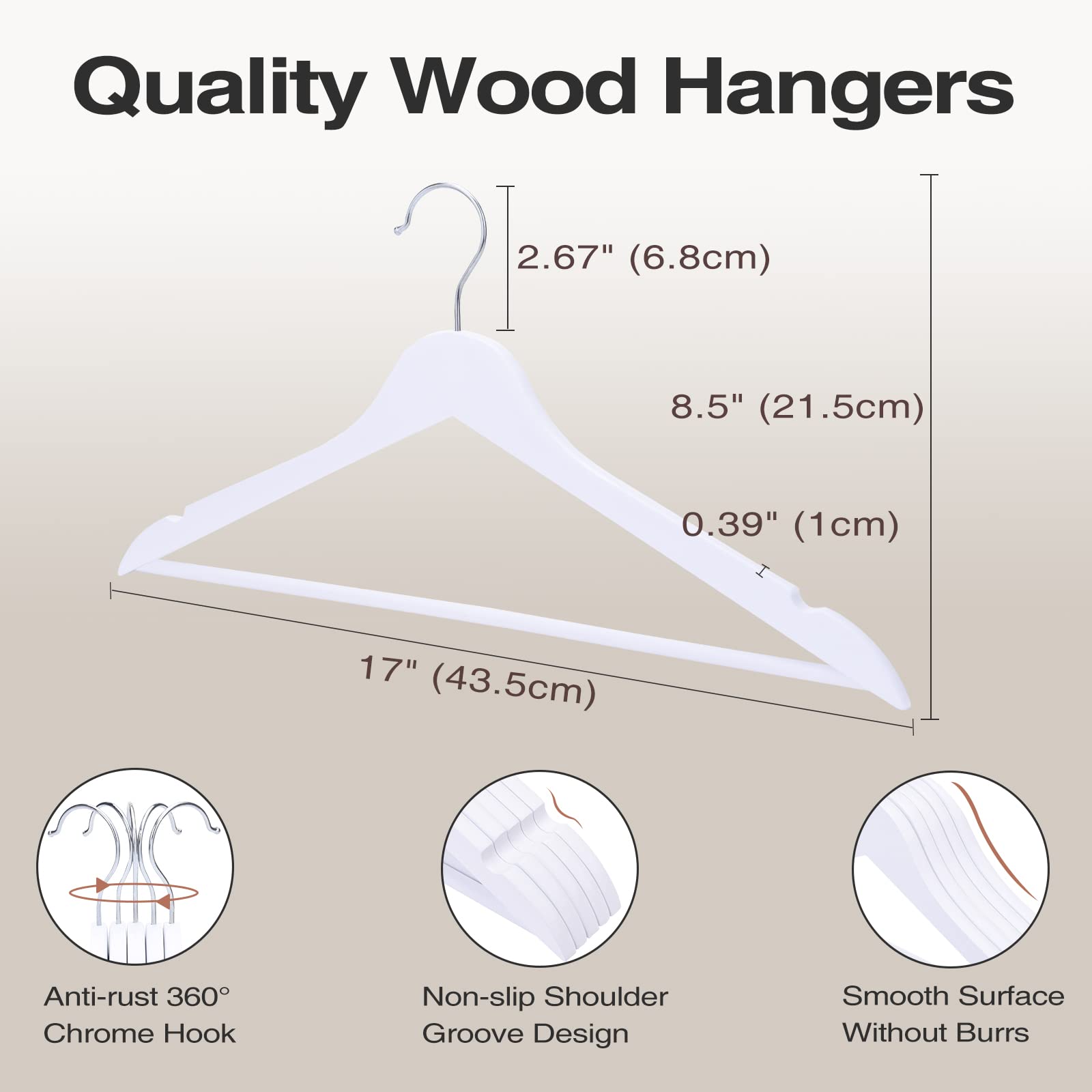 - Eco-friendly Coating: White wooden hangers coated with eco-friendly water-based paint for added protection decorates without unpleasant smell. Brighten up your closet with elegant white wood hangers.