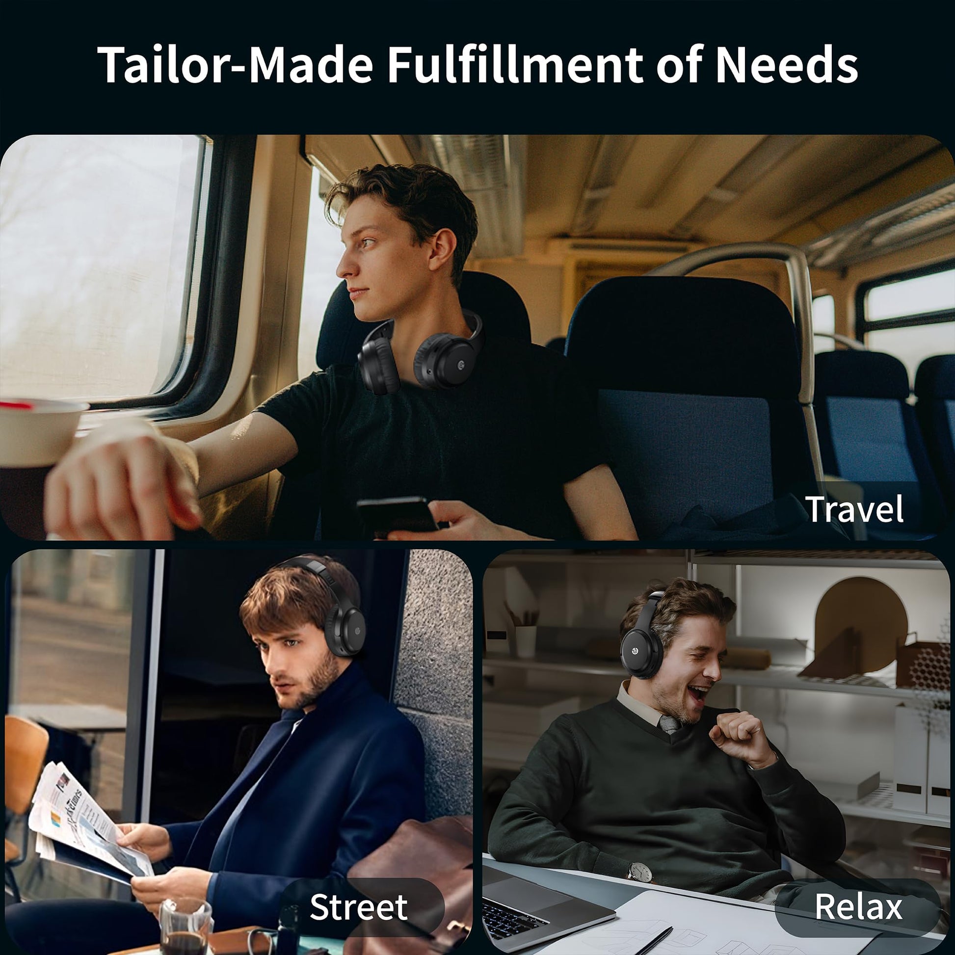 - [120 Hours Playtime] Bluetooth headphones redefine durability with a 120H-playtime, ensuring low power consumption and long battery life. Wireless headphones are designed for long hours of work and travel, featuring a stylish headphones case for protecting your over-ear headphones from damage while being easy to carry along