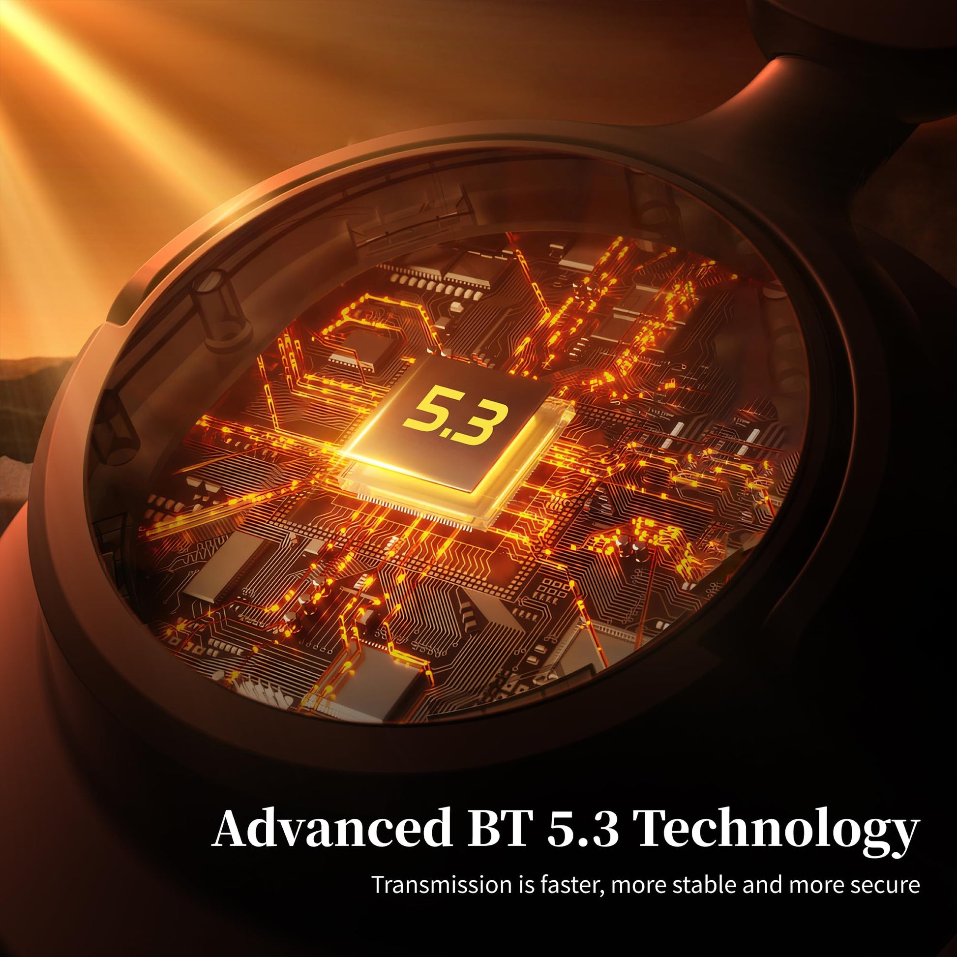 - [Quick Connect & Reconnect] Over-ear headphones connects easily to your device using BT 5.3 technology to ensure a wireless, hand-free listening experience. BT 5.3 ensures consistent transmission speeds, lower latency and better audio output. When connecting for the first time, press and hold the noise cancelling headphone's power button for 3 seconds to connect to the Bluetooth device name ‘H60’. Turn on the headphones switch to quickly reconnect