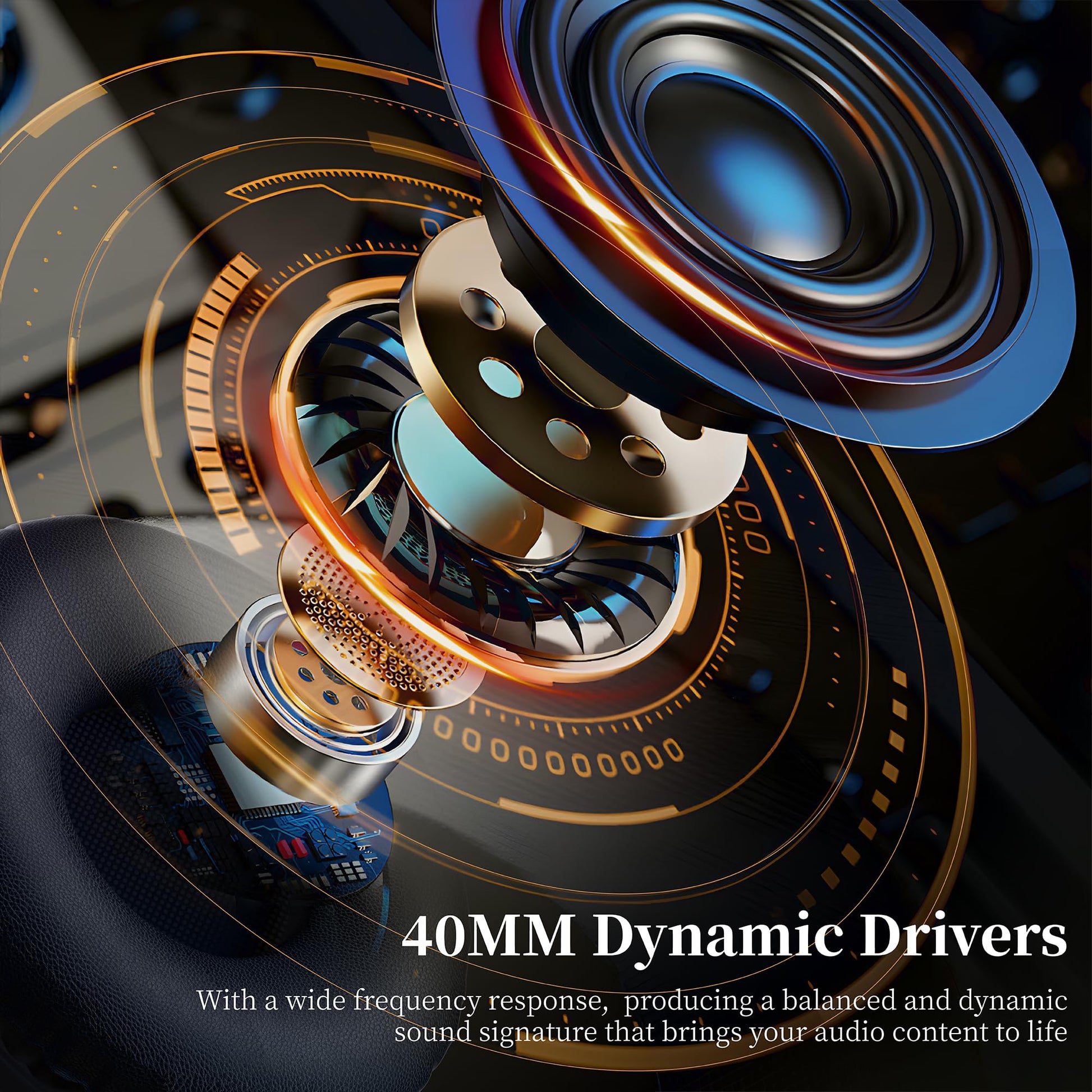 - [Both Wired & Wireless Connection] Over the ear headphones wireless bluetooth are equipped with 40mm drivers that bring you superior Hi-Fi sound and balanced deep bass for a better listening experience. In addition, headphones wireless bluetooth support both wireless and wired connections. When using a wired connection, the 40mm dynamic drivers produce high-fidelity sound for exceptional sound quality(Note: ANC function and mic is not available when in wired mode)