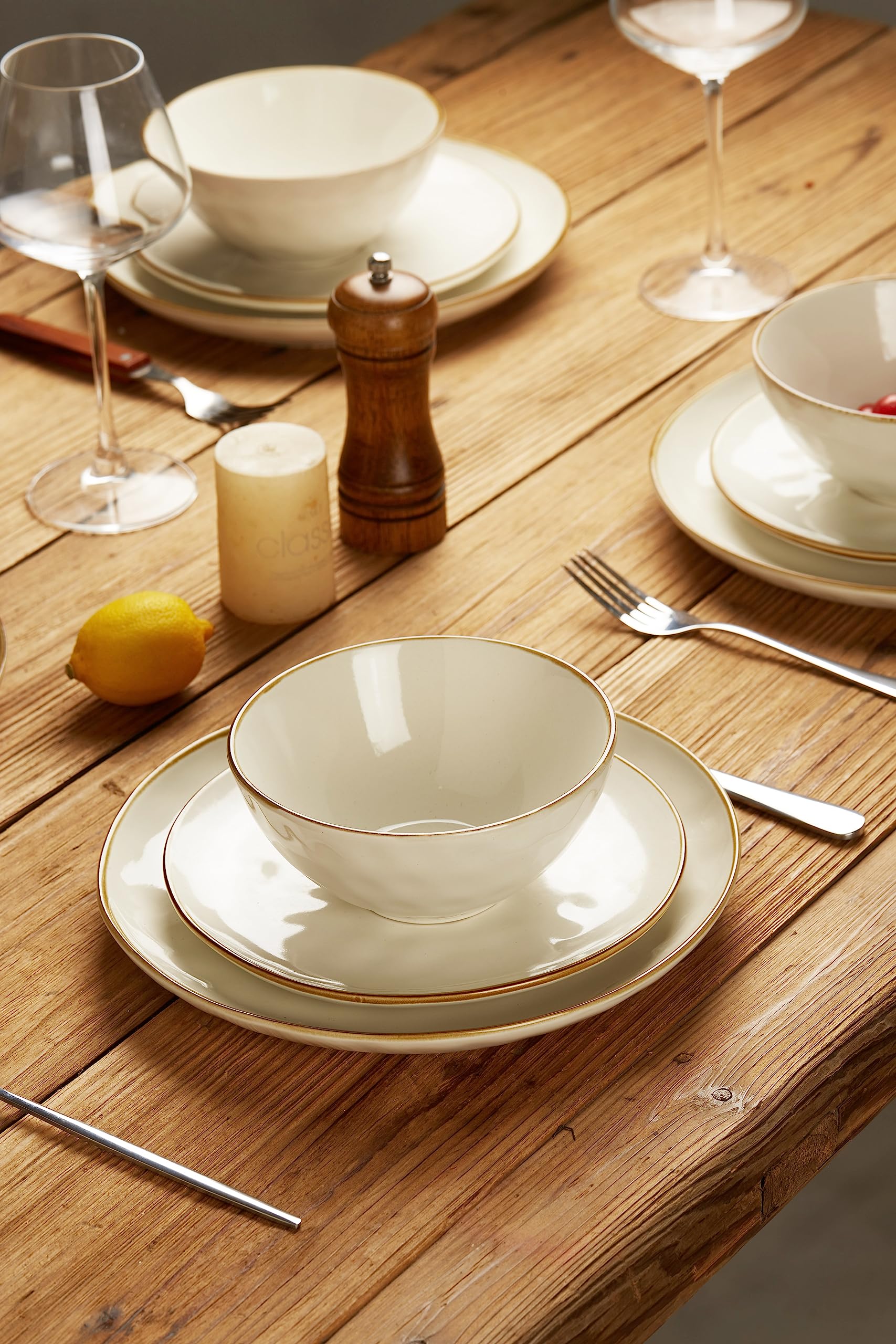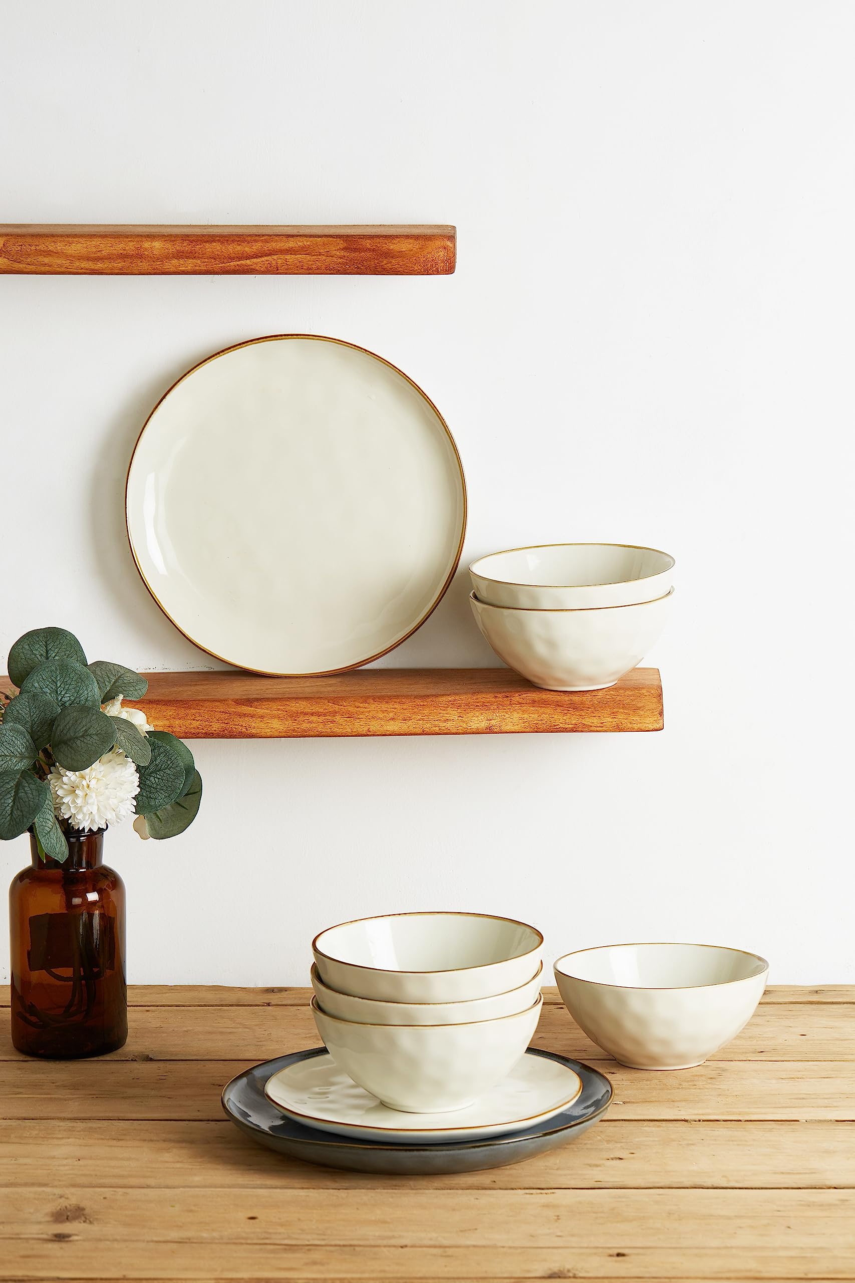- 【Dishwasher & Microwave Safe】 Famiware Stoneware bowls for kitchen are made of high-quality stoneware.Each palte and bowl is Dishwasher and microwave safe.